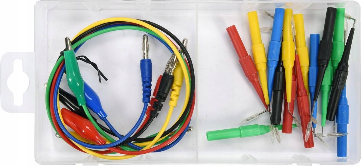 Zestaw elementów pomiarowych do multimetrów. Doskonale nadaje się do szybkiego testowania instalacji elektrycznej w samochodach osobowych i ciężarowych. W wygodnym opakowaniu 20 elementów pasujących do większości dostępnych multimetrów.