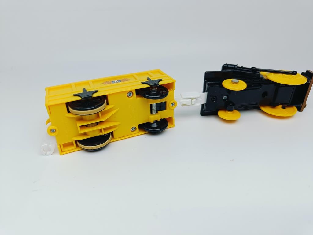 W porównaniu do nowej wersji ta posiada w napędzie przełącznik i małe sprzęgło które umożliwia swobodny ruch kolejki bez baterii co jest nie możliwe w "udoskonalonym" modelu f Fischer Price. Seria już nie produkowana o zdecydowanie bardziej szczegółowym wykonaniu detali i lepszej jakości od nowej robionej wg jednego wzoru.