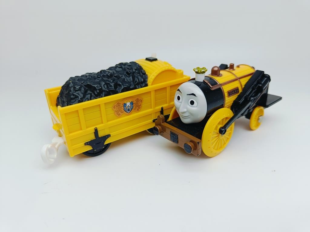 Może jeździć popychana po wszystkich rodzajach torów Tomy niebieskie, brązowe i szare Tracmaster i drewniane maja ten sam rozstaw.