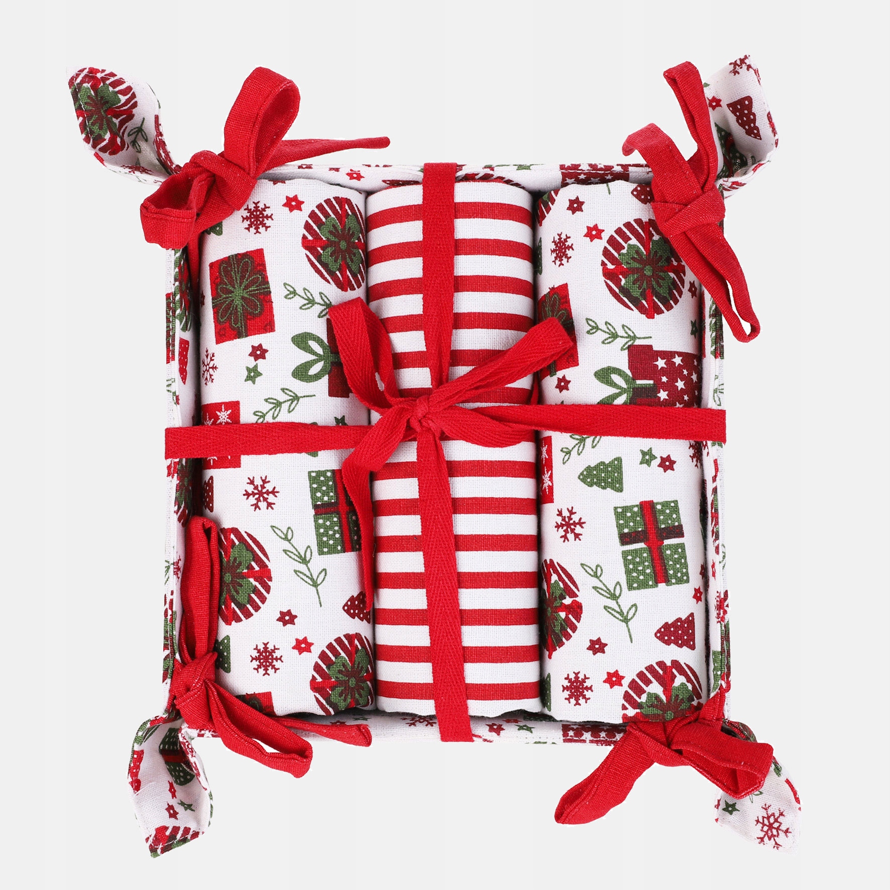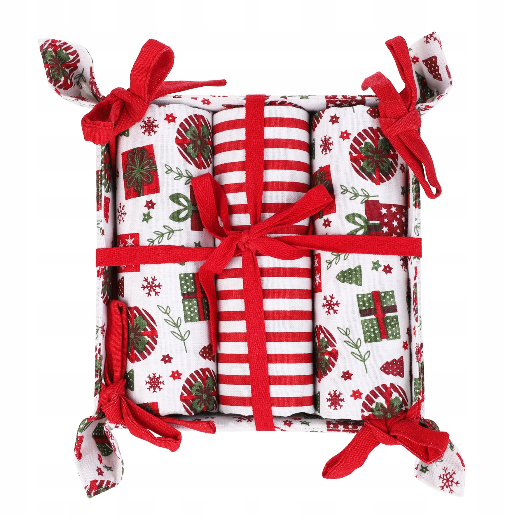 Komplet Ręczniki Kuchenne Świąteczne Koszyk PREZENT Święta Mikołajki Moraj