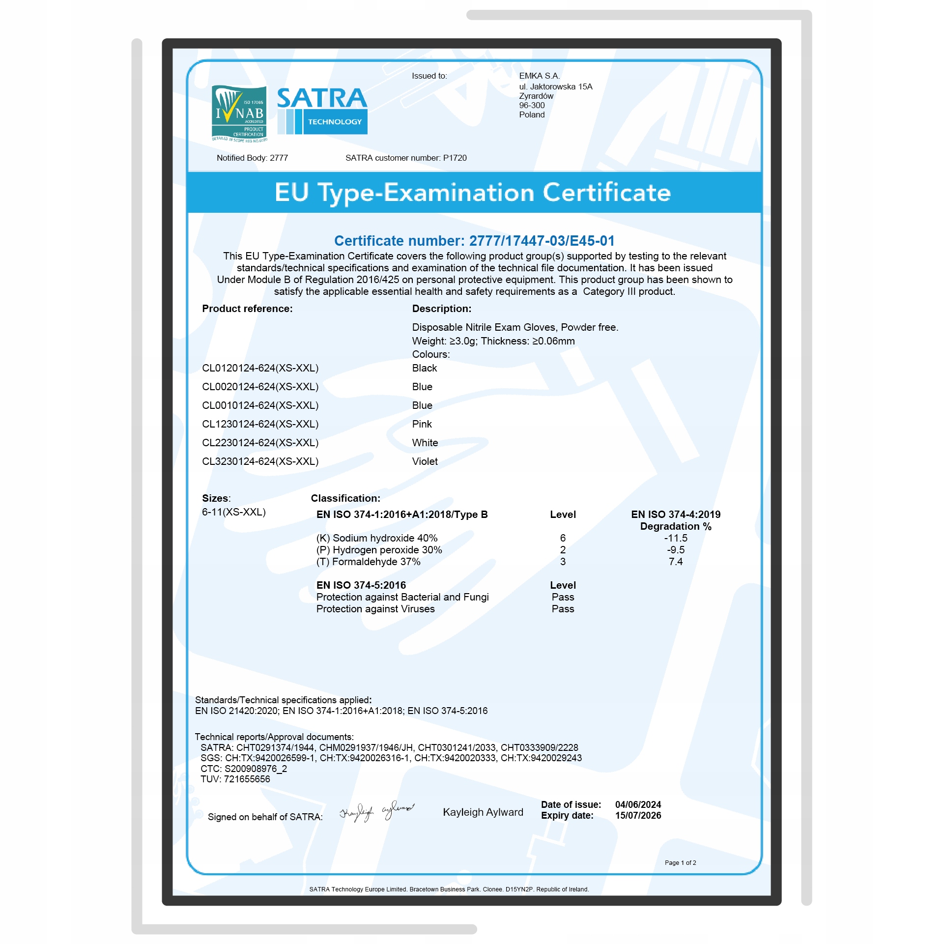 Rękawiczki CLARA spełniają najnowsze i najbardziej rygorystyczne normy, co zapewnia ich niezawodność i bezpieczeństwo: