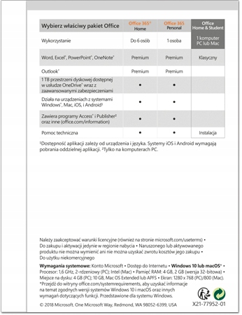 Zawartość pakietu: Word | Excel | PowerPoint | Outlook | OneNote