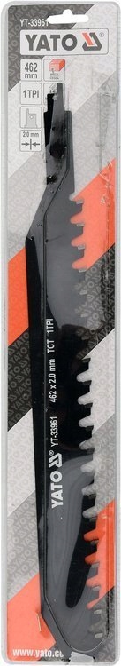 Typowy brzeszczot do cięcia pustaków ceramicznych, betonu komórkowego i silikatów używanych do murowania ścianek działowych o grubości 240 mm lub 360 mm. Użycie brzeszczotu z piłą szablastą, np. YT-82281 lub YT-82280 znacznie przyspiesza pracę oraz ułatwia precyzyjne cięcie w jednej płaszczyźnie.