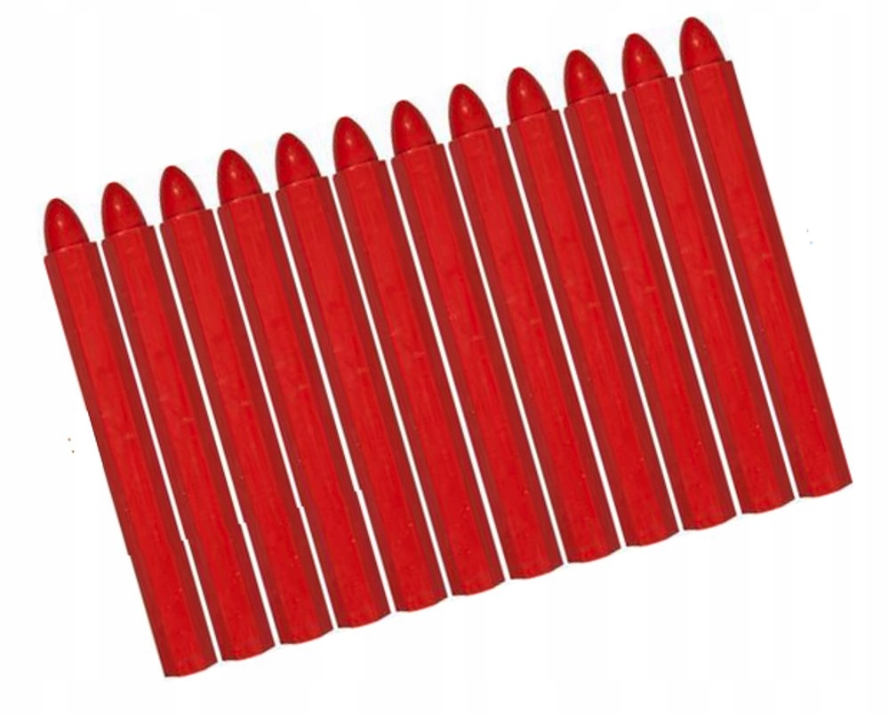 Kreda techniczna / tłusta/ do znakowania na metalu , drewnie, kamieniu, betonie, szkle, gumie. Kolor czerwony. wymiary ok. 120 x 12 mm. opk. 12 szt.