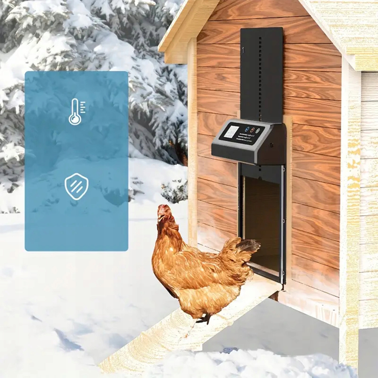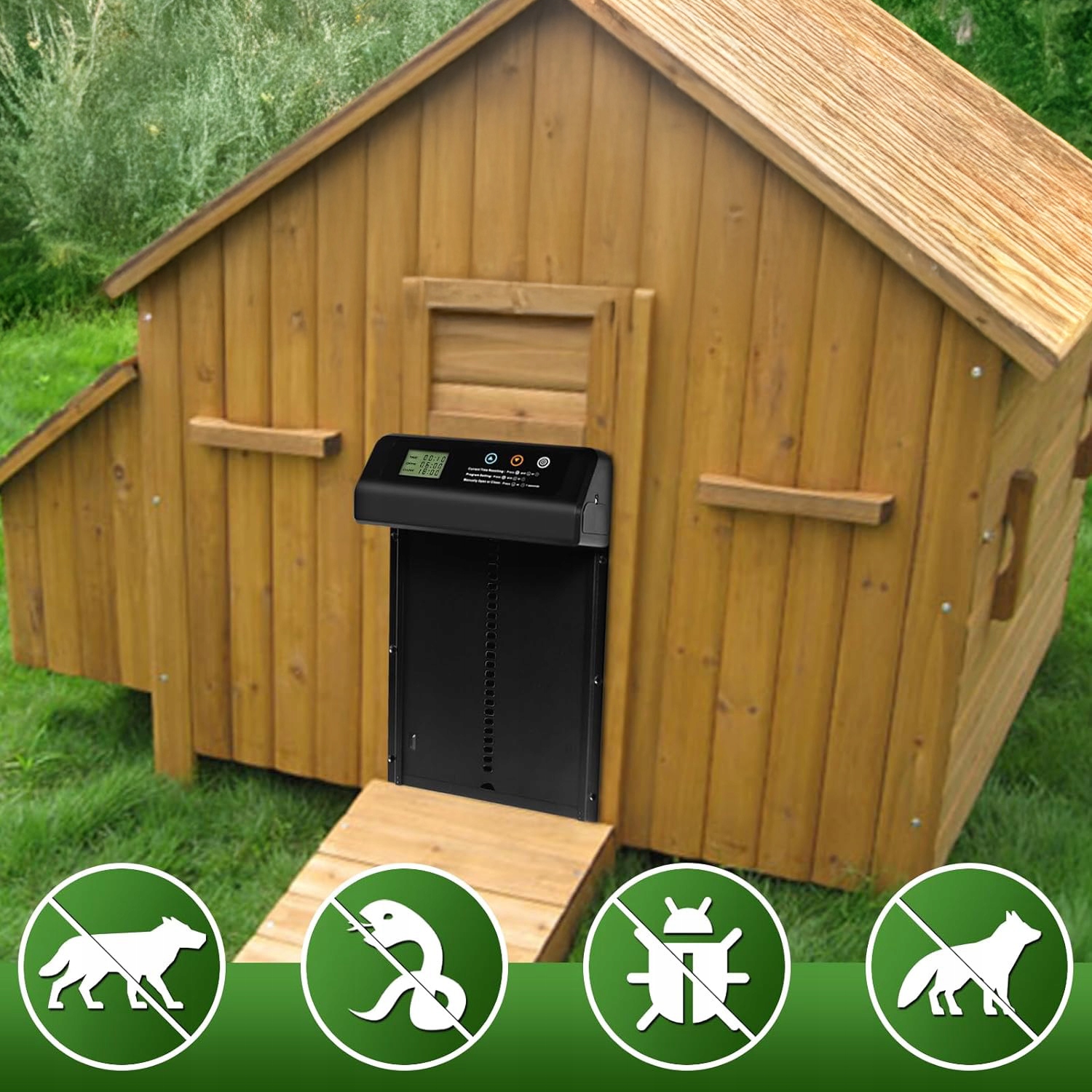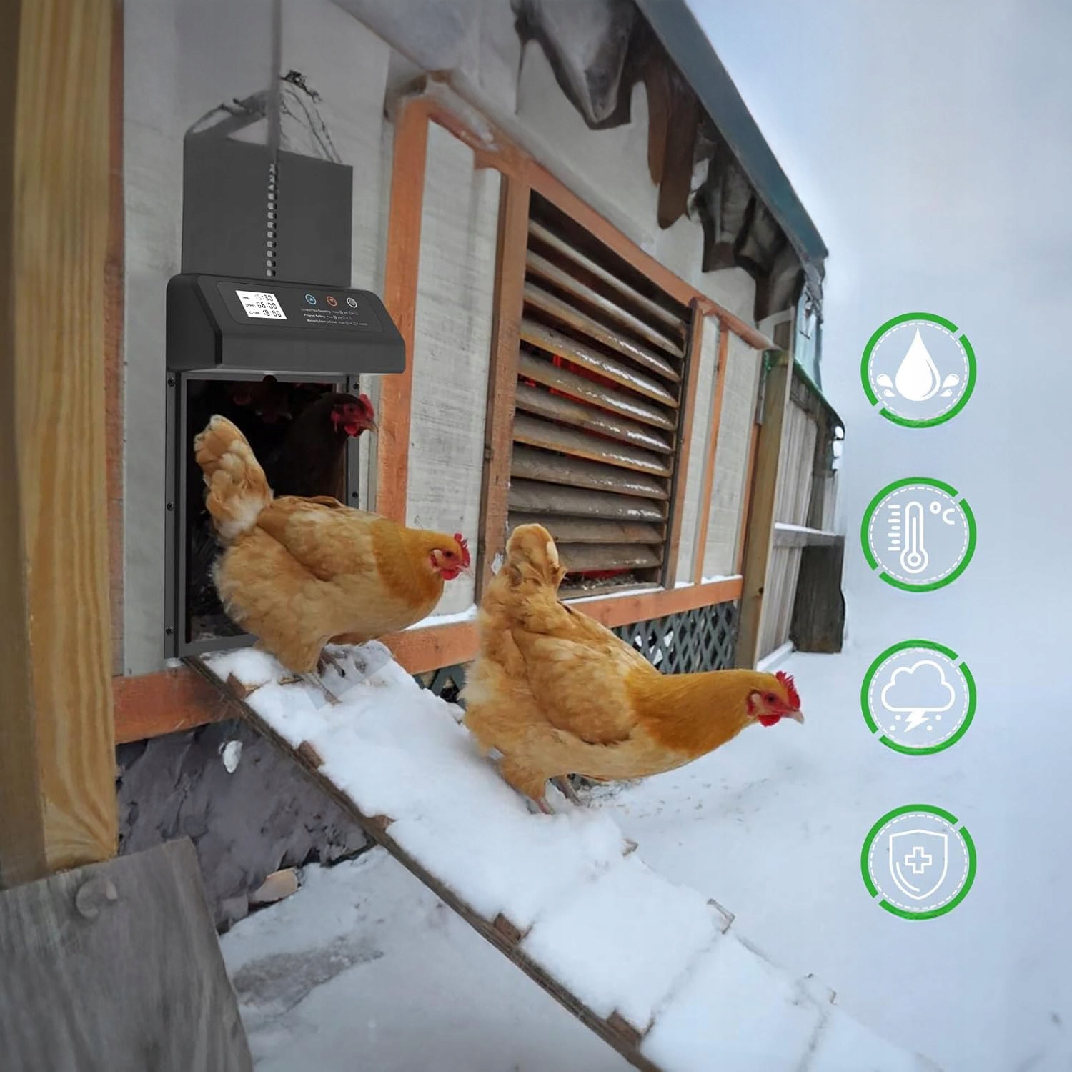 🐓AUTOMATYCZNE DRZWI DO KURNIKA Z WYŚWIETLACZEM LCD, AUTOMATYCZNE ZABEZPIECZENIE PRZED PRZYTRZAŚNIĘCIEM, WODOODPORNOŚĆ IPX5🐓