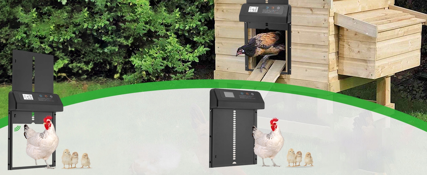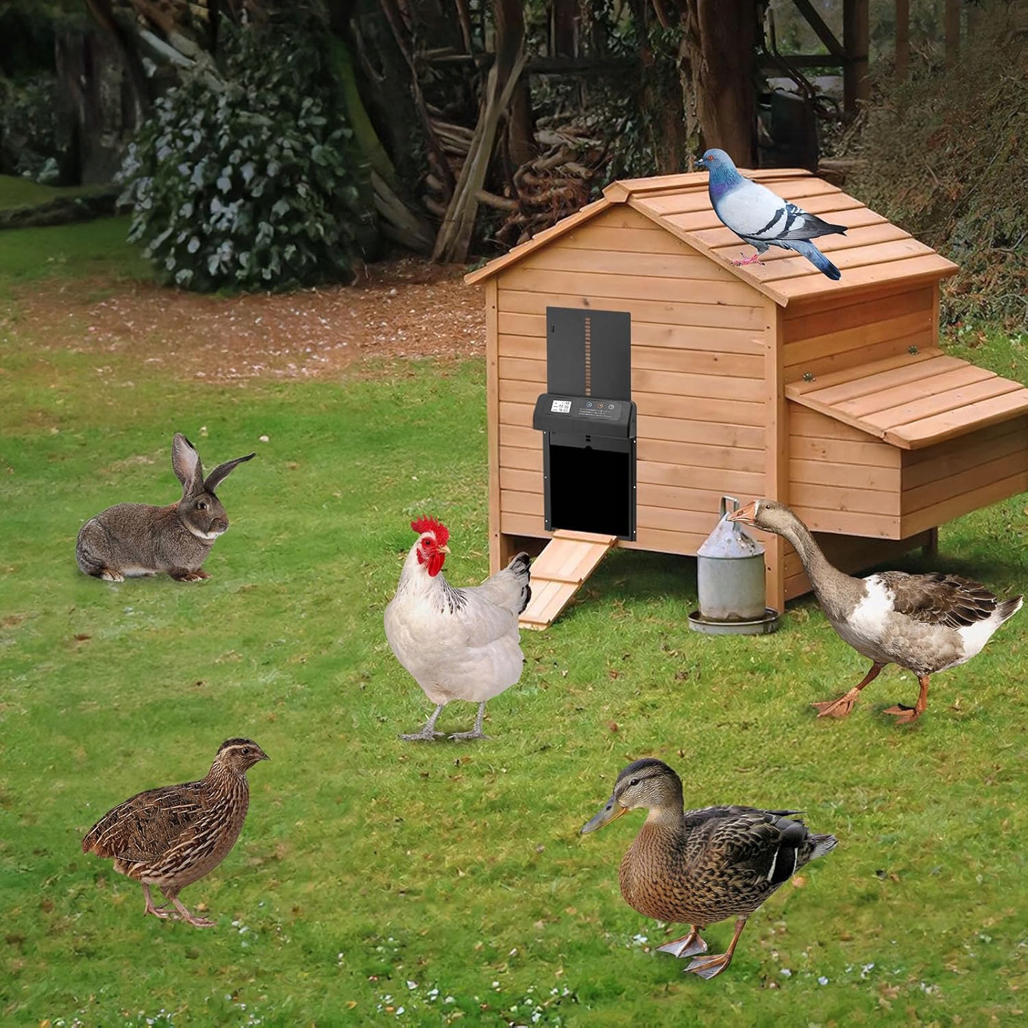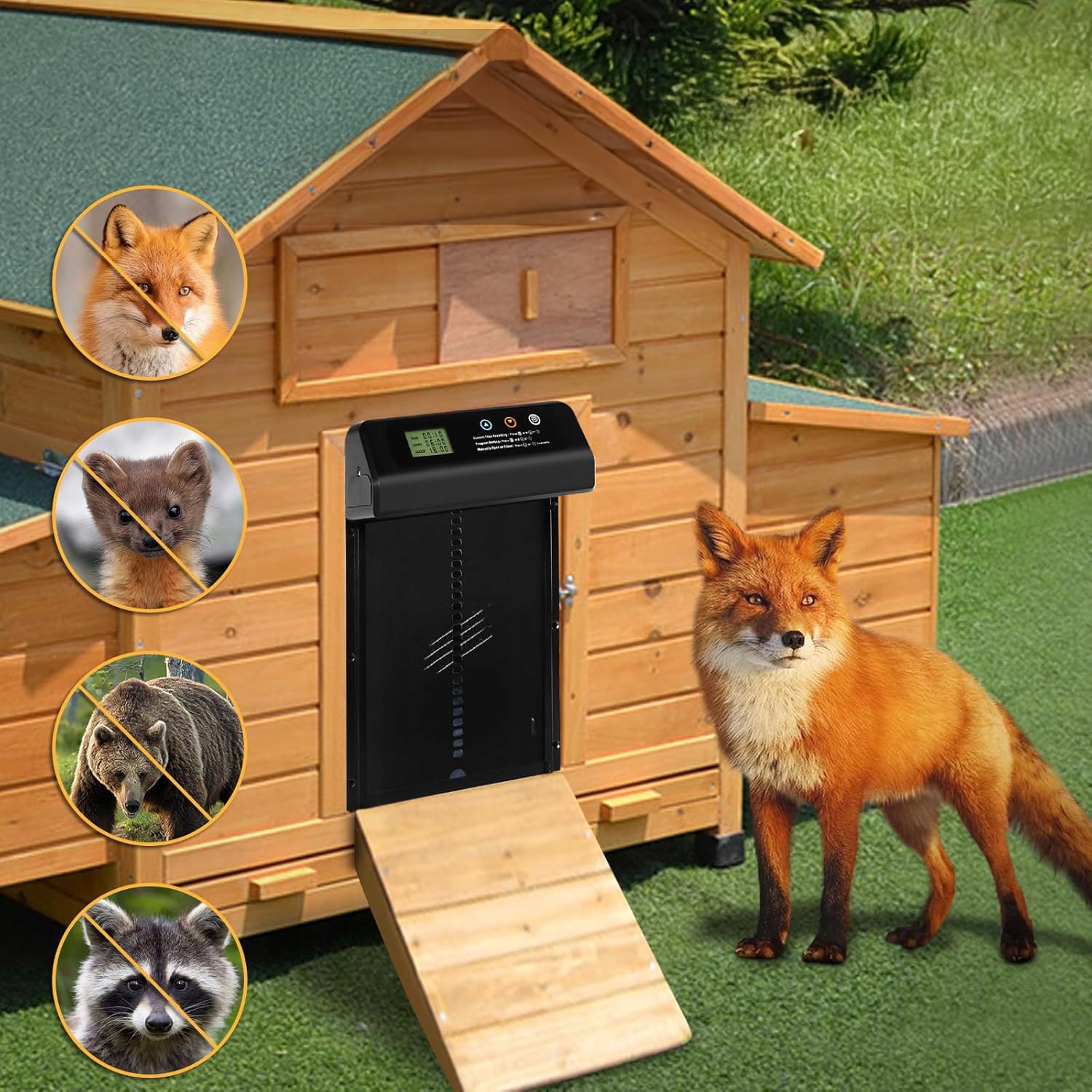 🐓AUTOMATYCZNE DRZWI DO KURNIKA Z WYŚWIETLACZEM LCD, AUTOMATYCZNE ZABEZPIECZENIE PRZED PRZYTRZAŚNIĘCIEM, WODOODPORNOŚĆ IPX5🐓