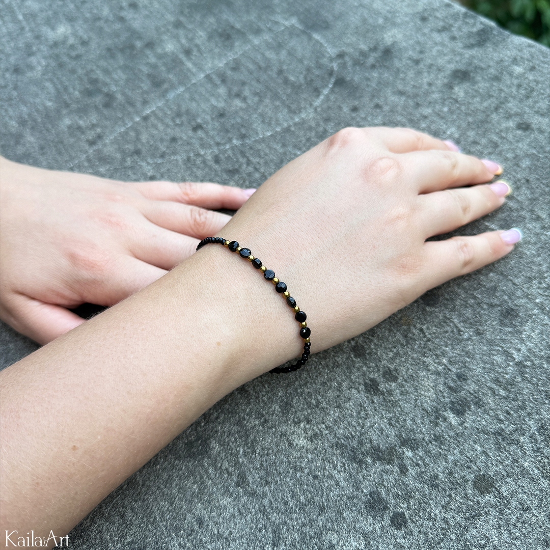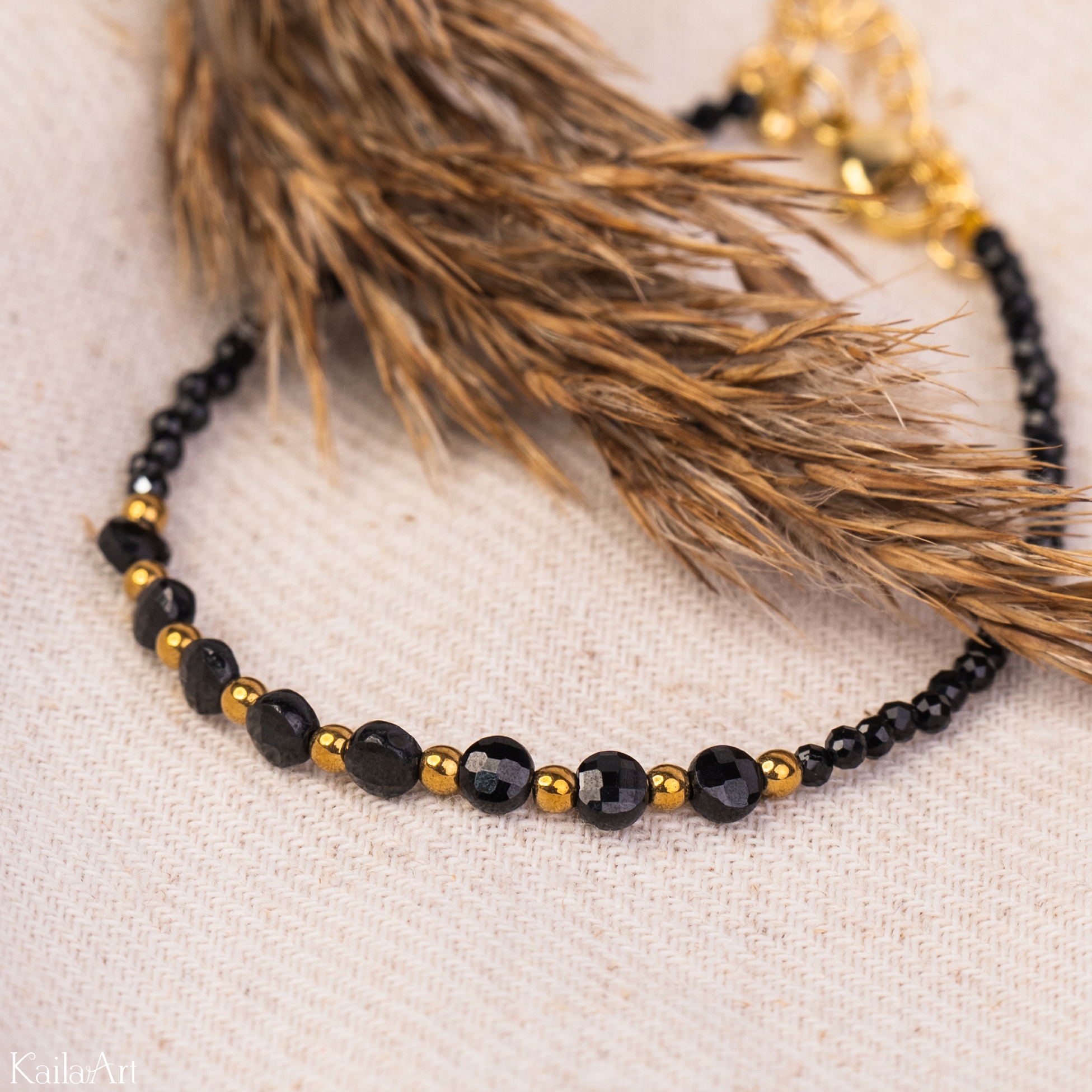 Bransoletka czarny turmalin hematyt to wyjątkowy i stylowy dodatek, który łączy elegancję z naturalnym charakterem. Jeśli szukasz biżuterii, która nie tylko podkreśli Twój styl, ale także wpłynie pozytywnie, ta bransoletka będzie idealnym wyborem. Delikatny, fasetowany kamień nadaje całości subtelności i lekkości, a jednocześnie przyciąga wzrok swoją głębią i wyjątkową strukturą.