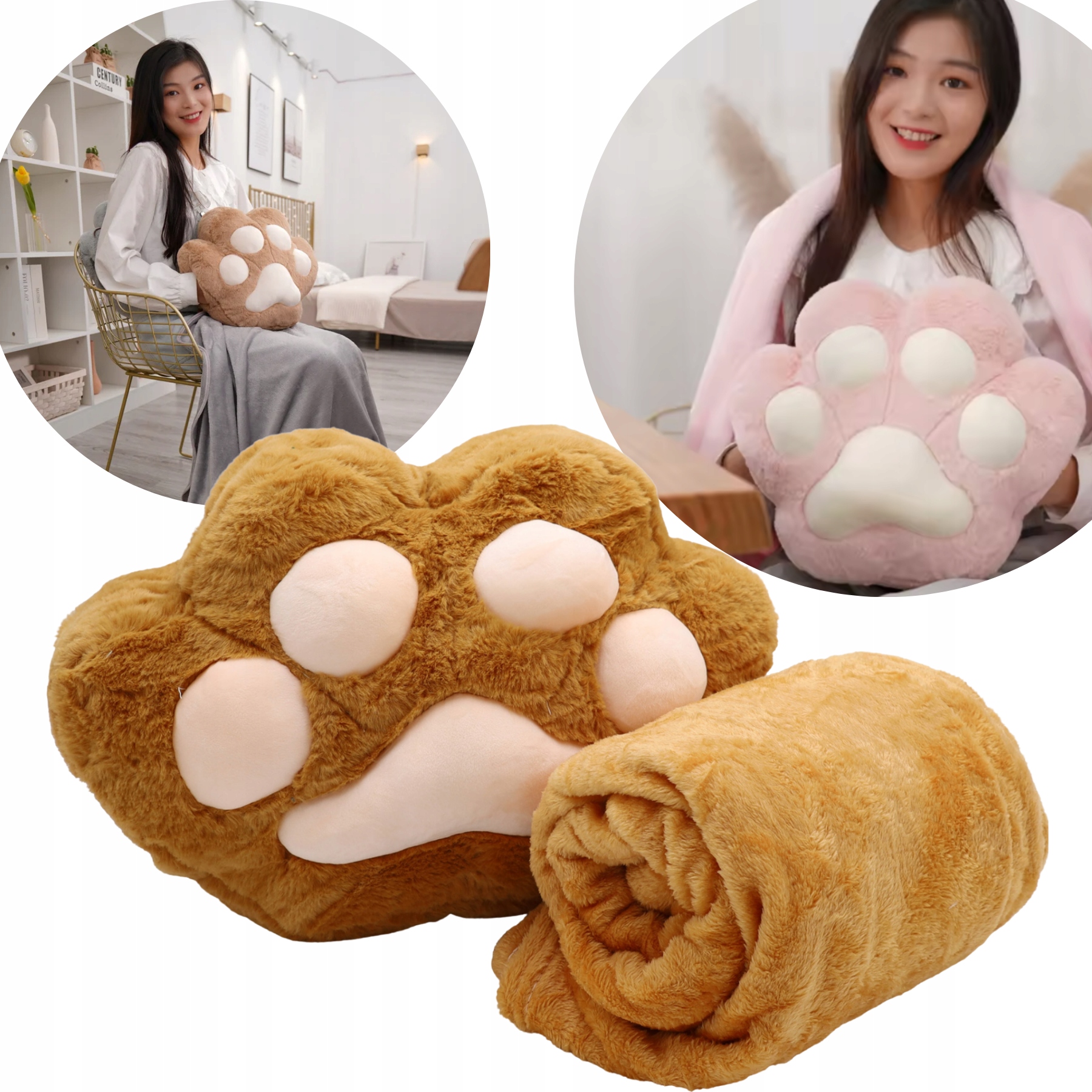 PODUSZKA KOCIA ŁAPKA Z KOCEM, TERMOFOR 3w1 – BRĄZOWA – MIĘKKA I PRZYTULNA
