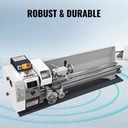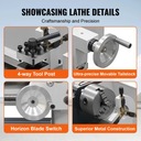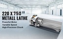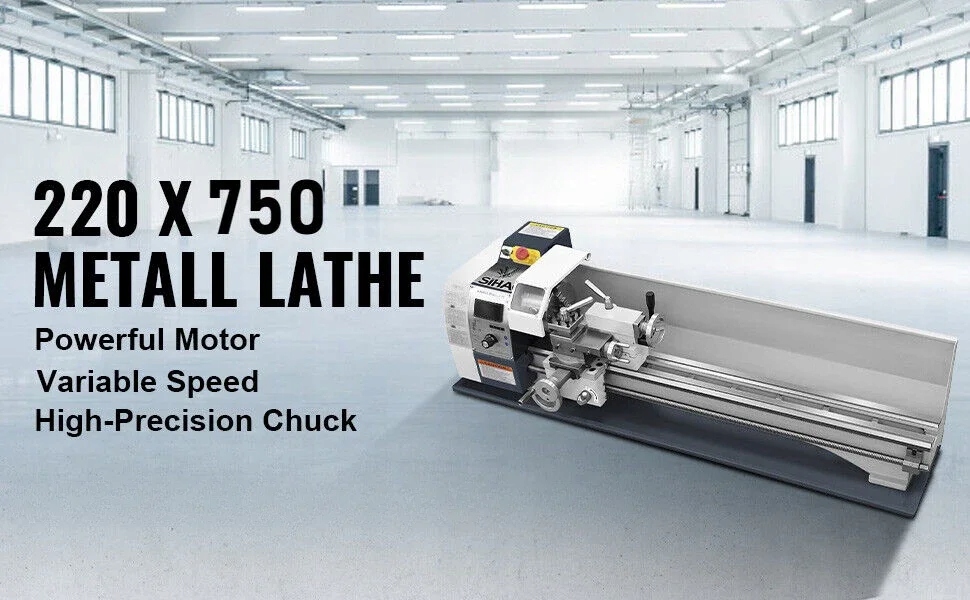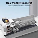 Precyzyjna metalowa mini tokarka o wymiarach 220 x 750 mm posiada silnik W, 3-szczękowy uchwyt, stożek wrzeciona MT5 i stożek konika MT2. Zaprojektowany do wykonywania różnego rodzaju toczenia metalu, łatwy w obsłudze. Poprzez proces hartowania o wysokiej częstotliwości i precyzyjne szlifowanie wysokiej jakości złoża żeliwnego. Prędkość obrotowa wrzeciona 0-3000 obr/min ± 10% obr/min jest regulowana w sposób ciągły. Stały odpoczynek i podążanie za odpoczynkiem w przypadku dużych lub / i ciężkich przedmiotów obrabianych.