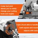 Samocentrujący uchwyt 3-szczękowy jest testowany z dokładnością i powtarzalnością, aby stale regulować materiały cylindryczne. Tylki osłona przeciwbryzgowa w zestawie. Wrzeciono jest wspierane przez precyzyjne łożyska stożkowe z dokładnością wrzeciona w granicach 0.01-0.02mm.
