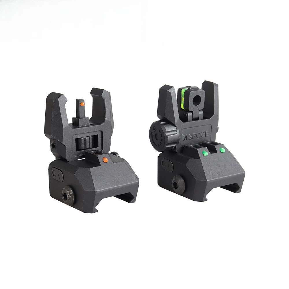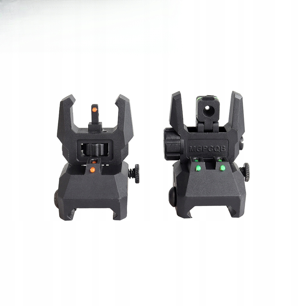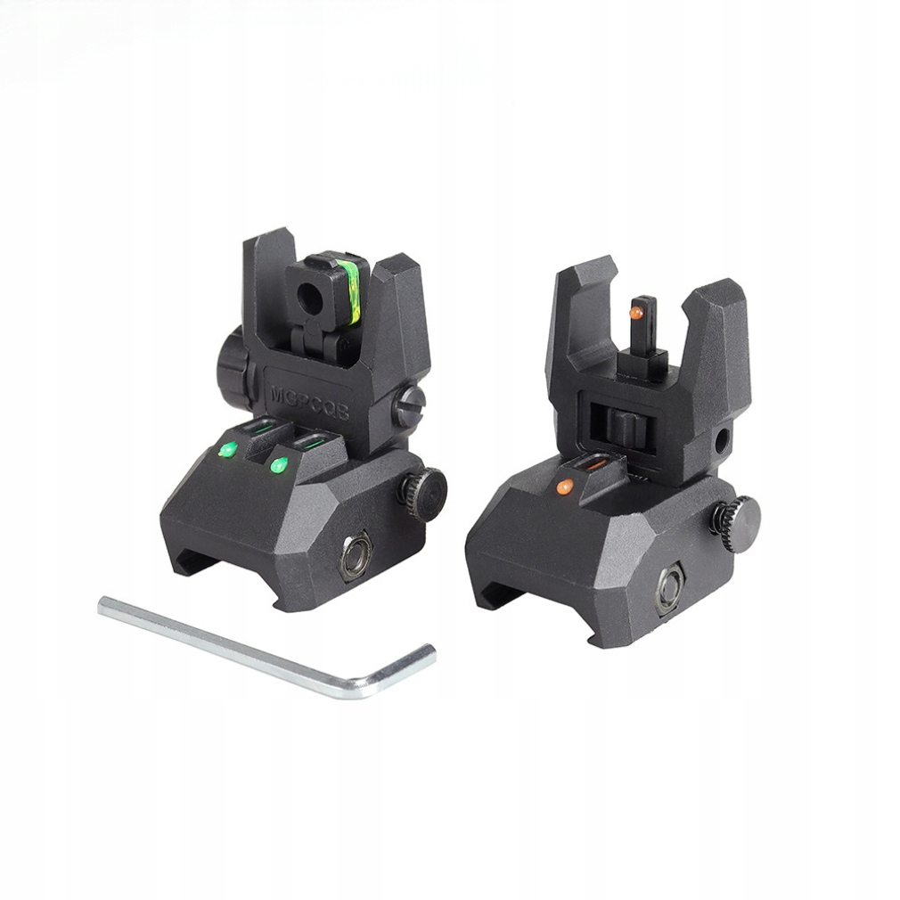 SKŁADANE PRZYRZĄDY CELOWNICZE Z PRZODU I Z TYŁU, LEKKIE PRZYRZĄDY CELOWNICZE Z ZIELONYMI, CZERWONYMI KROPKAMI ŚWIATŁOWODOWYMI, MONTOWANE NA DOWOLNEJ SZYNIE PICATINNY LUB WEAVER
