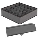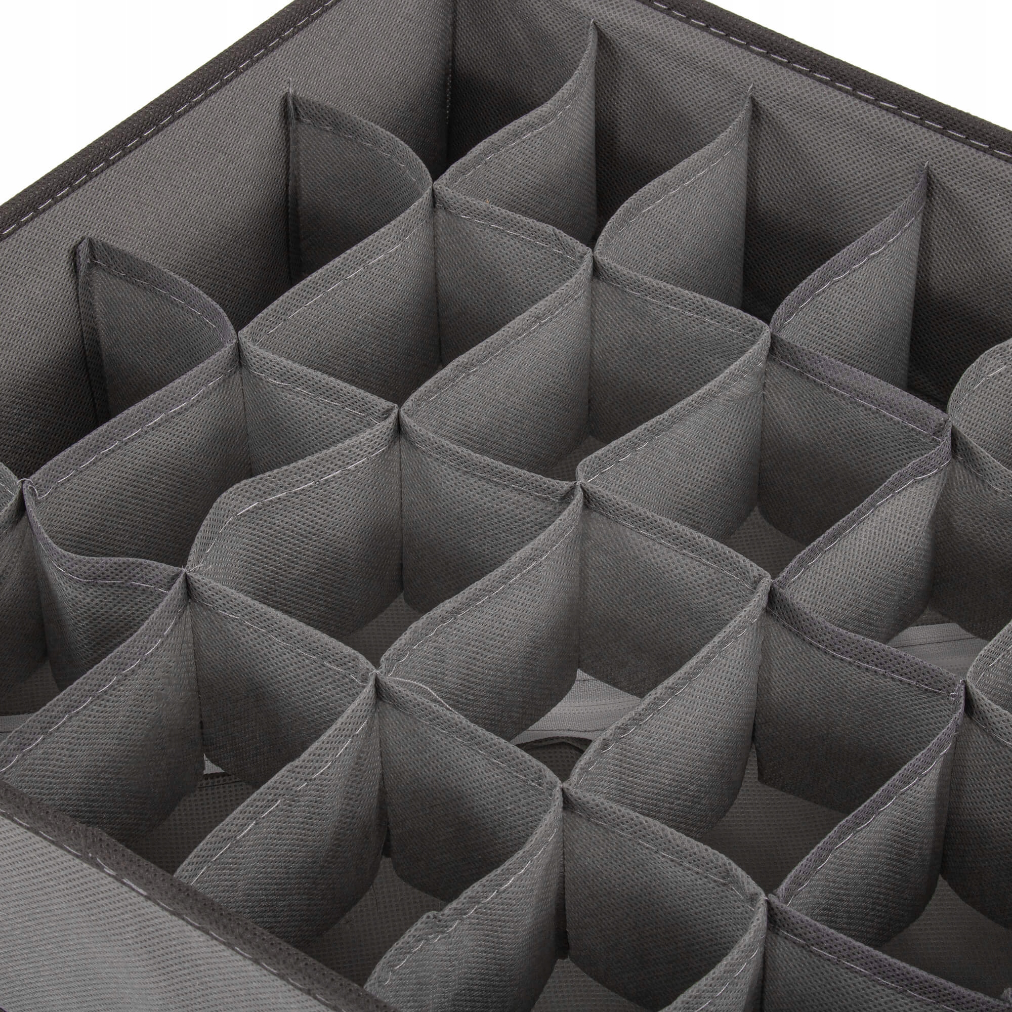 Produkt wykonany z trwałej włókniny. Usztywnione boczne ścianki organizera sprawiają, że konstrukcja staje się stabilna i nie odgina się. Organizer z 24 przegródkami świetnie sprawdzi się w szufladach, porządkując różne niewielkie elementy.