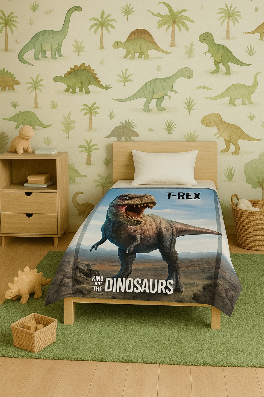 🦕 Kocyk T-Rex – miękki towarzysz dziecięcej przygody i odpoczynku.