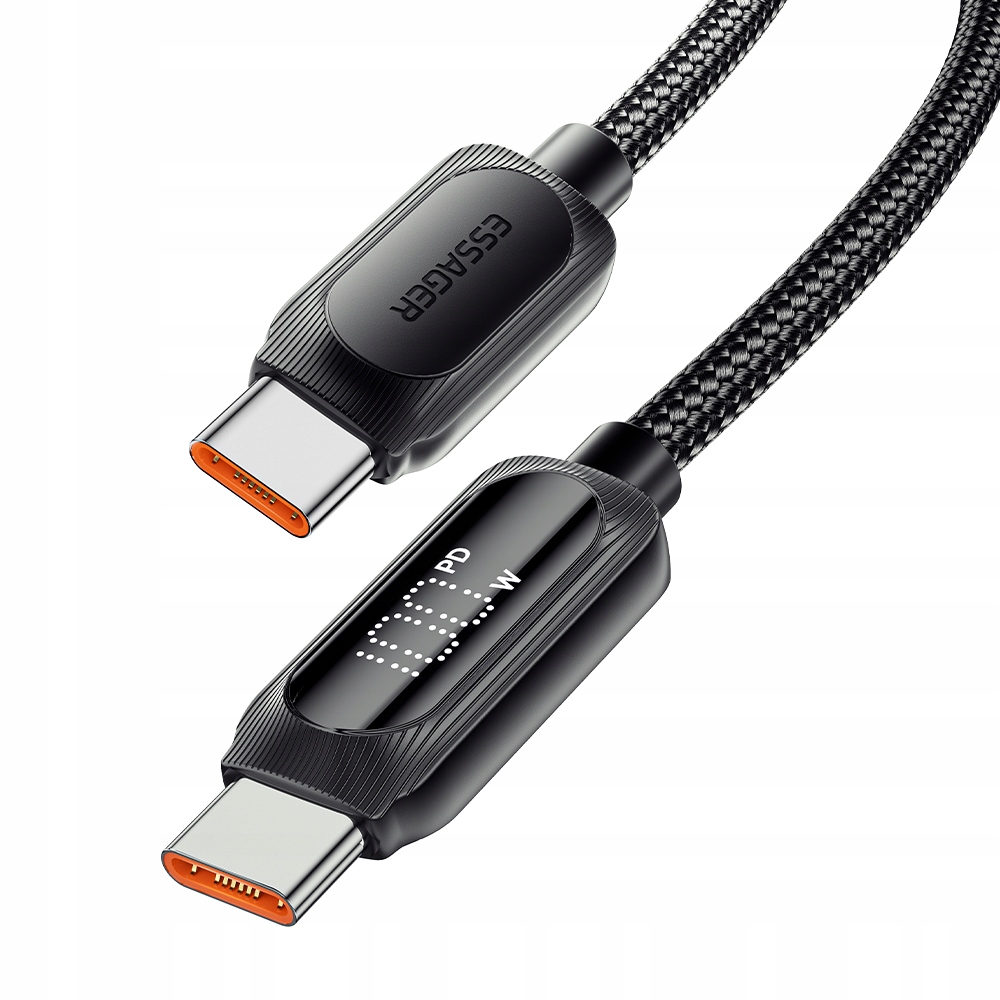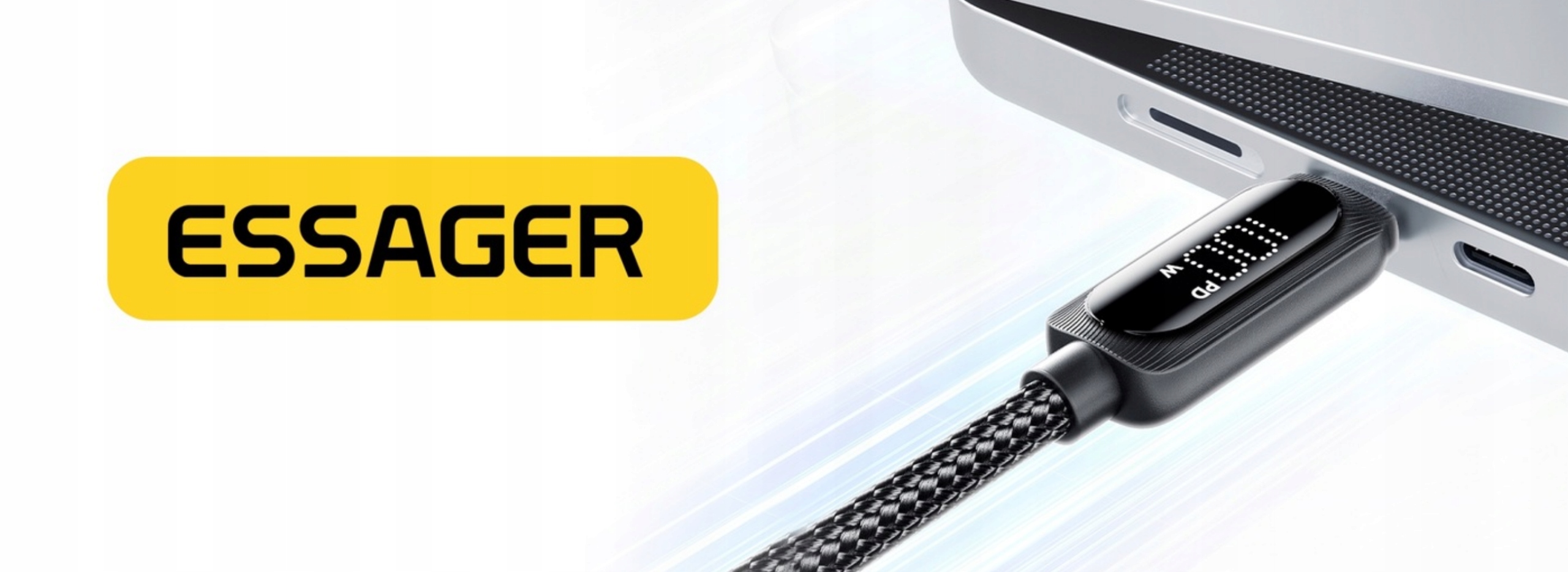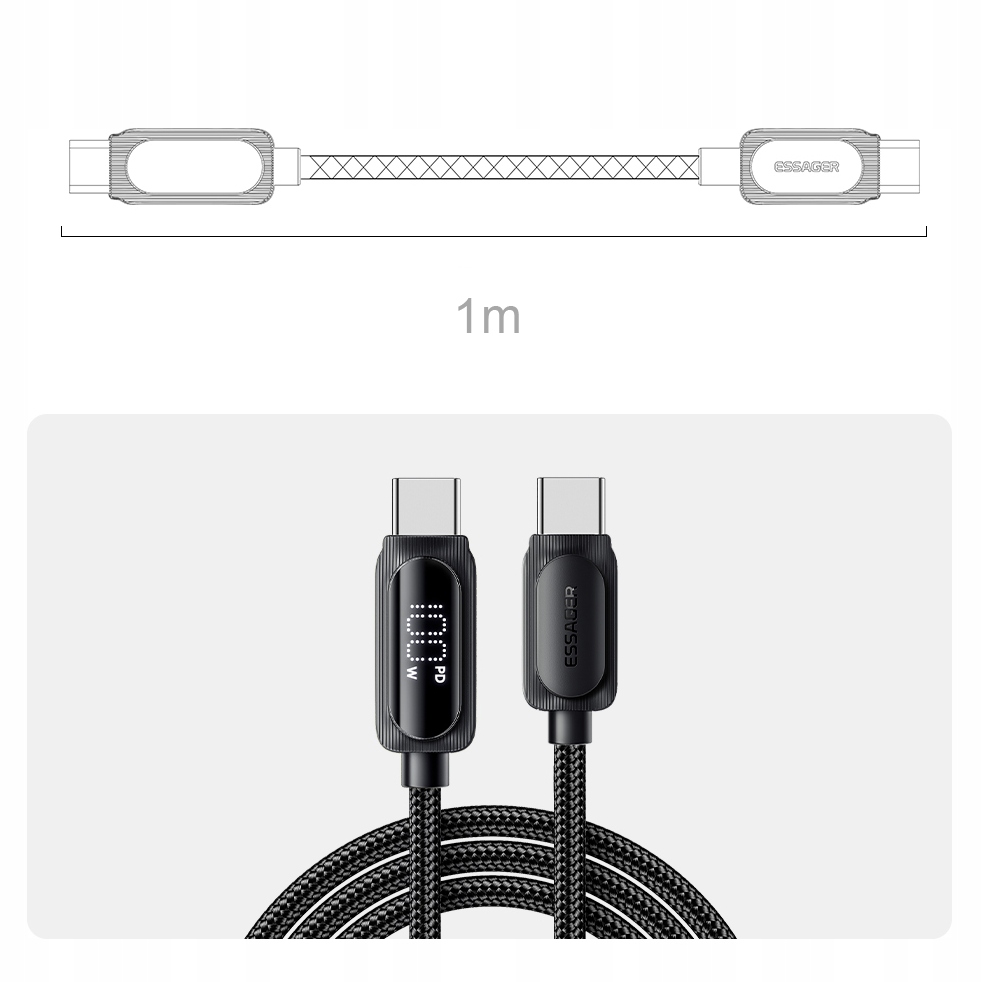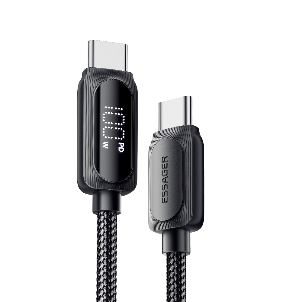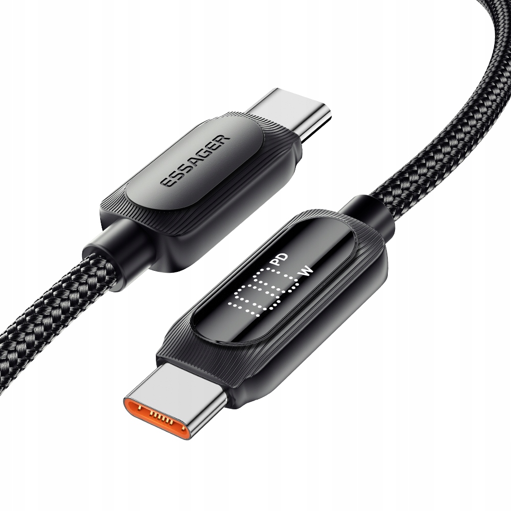 ESSAGER® 100W USB-C ↔ USB-C z wyświetlaczem LED LCD to przewód klasy premium, łączący nowoczesny design z maksymalną wydajnością. Wyposażony w ekran LED LCD, który w czasie rzeczywistym pokazuje moc ładowania – zapewniając pełną kontrolę i bezpieczeństwo.