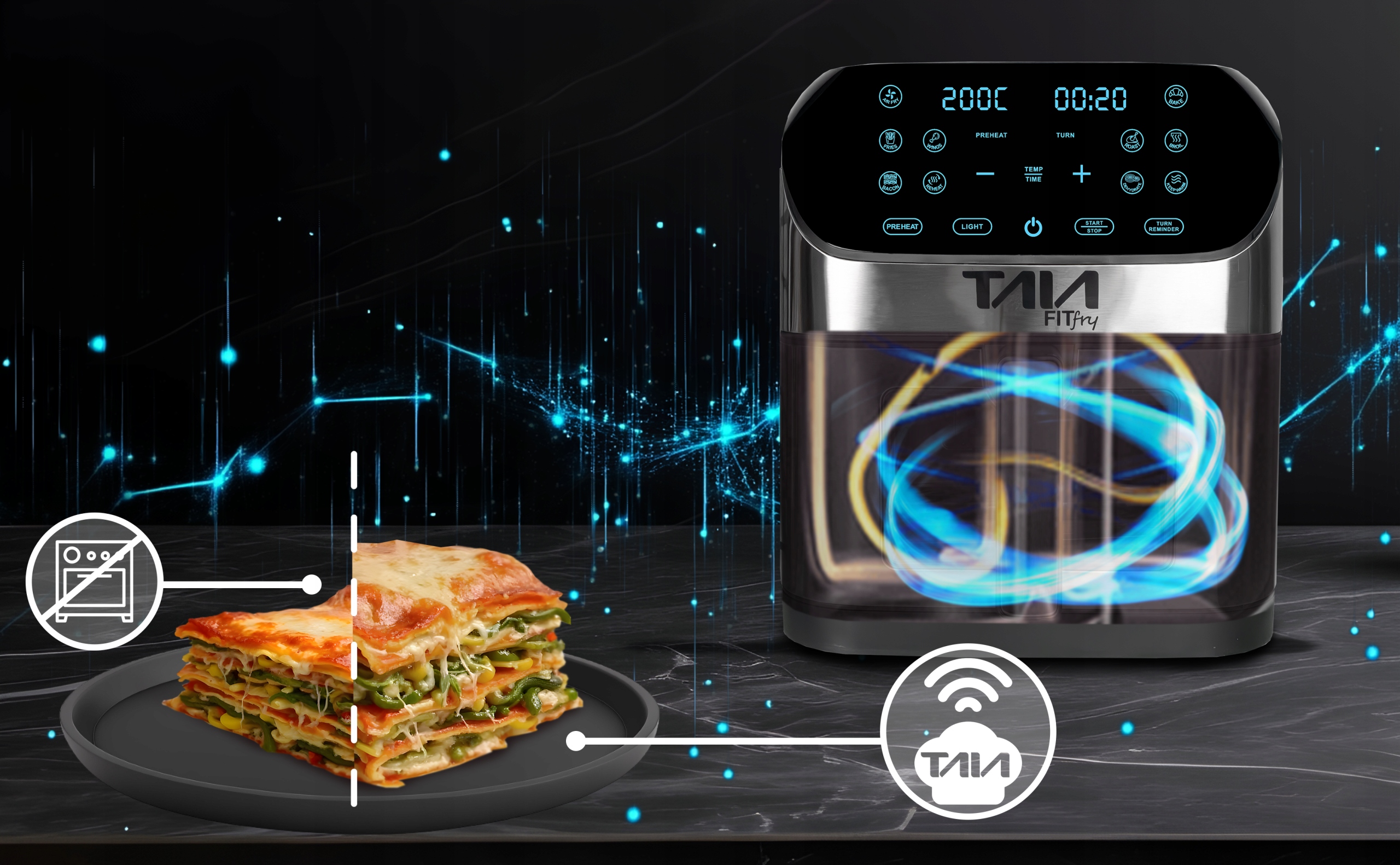 Jeśli szukasz wydajnej, cichej, łatwej w obsłudze i nowoczesnej frytkownicy beztłuszczowej, która pomieści wszystko, czego potrzebuje Twoja rodzina — TAIA FIT FRY to idealny wybór. To frytkownica z dużą pojemnością, ekranem dotykowym, dwoma komorami i technologią powietrzną, która gwarantuje zdrowe gotowanie bez kompromisów.