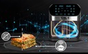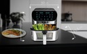 Precyzyjny system kontroli temperatury pozwala na utrzymanie stałego poziomu ciepła przez cały cykl gotowania. Dzięki temu potrawy są równomiernie wypieczone, nie przypalają się i nie pozostają surowe w środku. Idealny balans temperatury = perfekcyjna chrupkość bez tłuszczu.