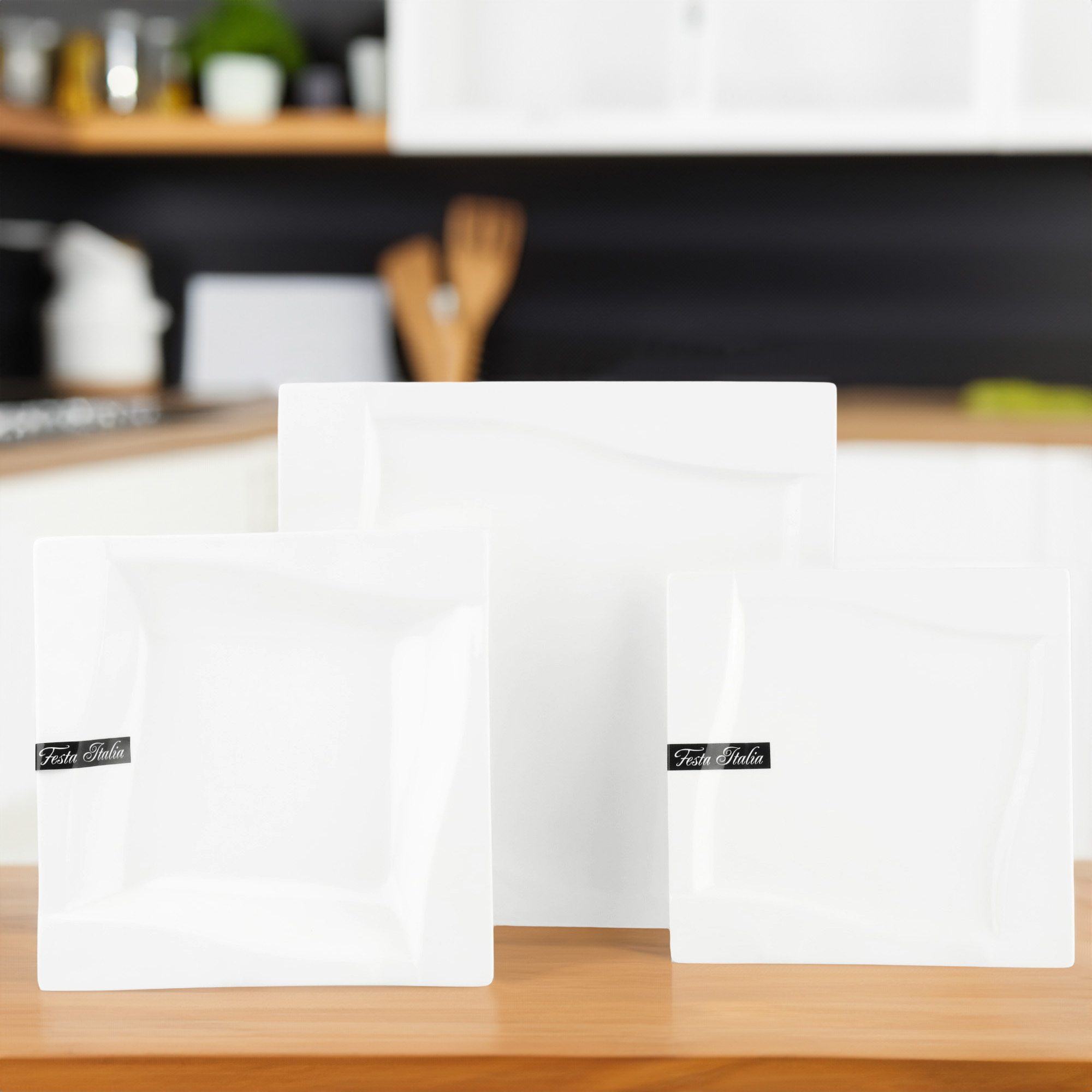 ✔️Każdy talerz ma kształt kwadratu z wcięciem w kształcie rombu, dodających imponującego wyglądu i subtelnego stylu. Ta elegancka ozdoba dodaje imponującej klasy każdemu posiłkowi, niezależnie od okazji.