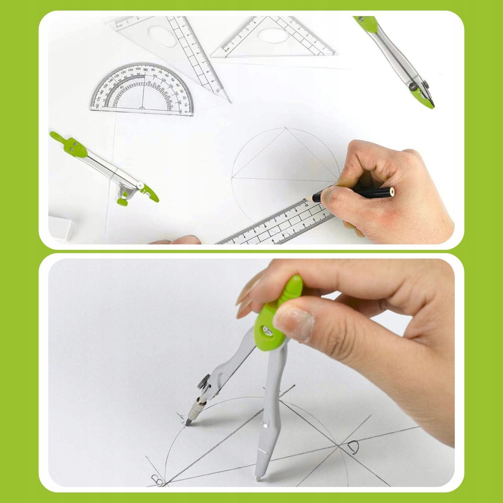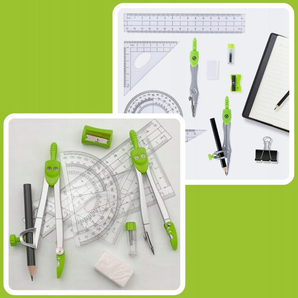 ZESTAW GEOMETRYCZNY SZKOLNY MATEMATYKI CYRKLE LINIJKA EKIERKI 10 ELEMENTÓW