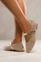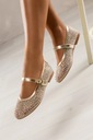 Stylizacyjna wszechstronność i kobiecy charakter tych balerin sprawiają, że bez trudu dopasujesz je do wielu różnych outfitów – od eleganckiej sukienki, przez casualowe jeansy, aż po lekkie letnie spódnice. Złoty kolor w połączeniu z migoczącymi kryształkami tworzy wyjątkowy, ale nienachalny blask, który dodaje szyku każdej stylizacji. To idealne buty zarówno na co dzień, jak i na specjalne okazje – romantyczne randki, przyjęcia, chrzciny czy wesela. Ich uniwersalna forma typu Mary Jane z zaokrąglonym noskiem to połączenie klasyki z modowym akcentem retro, który powraca w wielkim stylu. Jeśli szukasz obuwia, które doda stylu, a jednocześnie będzie wygodne – to model dla Ciebie.