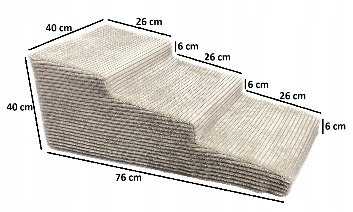 Od spodu wszyta tkanina, antypoślizgowa, zapobiega przesuwaniu się schodków.