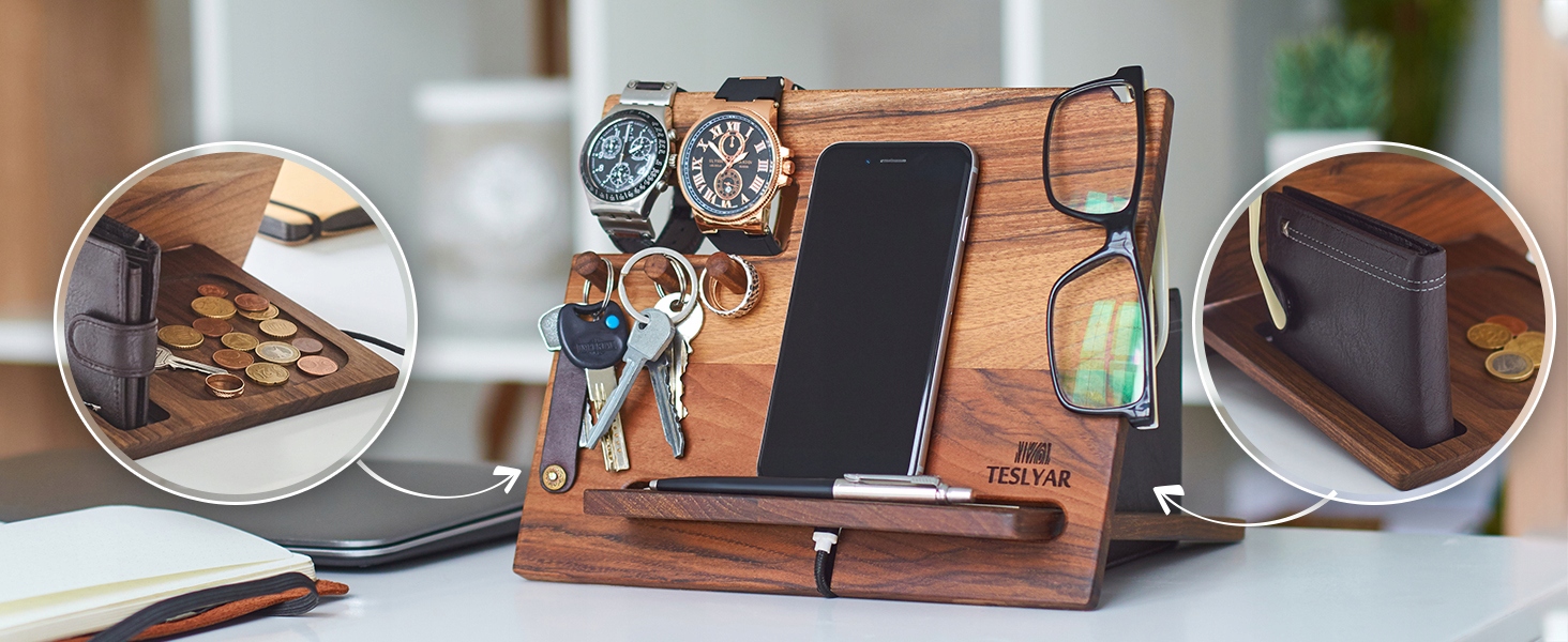 Praktyczny i kompaktowy organizer wykonany ręcznie z naturalnego drewna orzechowego w kolorze bronzo. Doskonale wpasowuje się w każde wnętrze – zarówno klasyczne, jak i nowoczesne. Zapewnia porządek i wygodny dostęp do najpotrzebniejszych rzeczy każdego dnia.