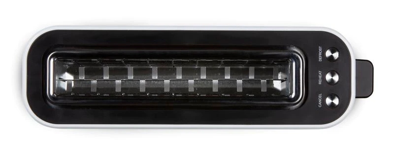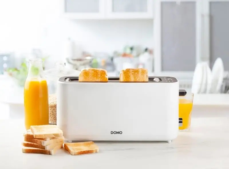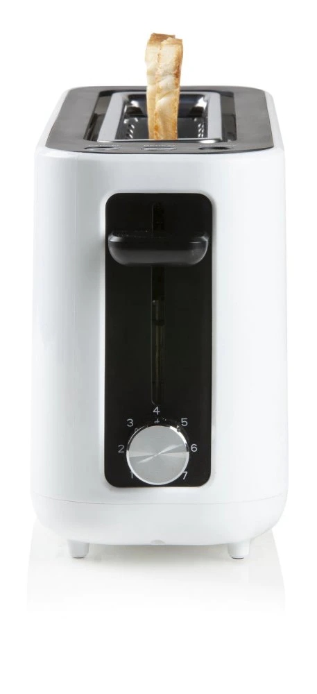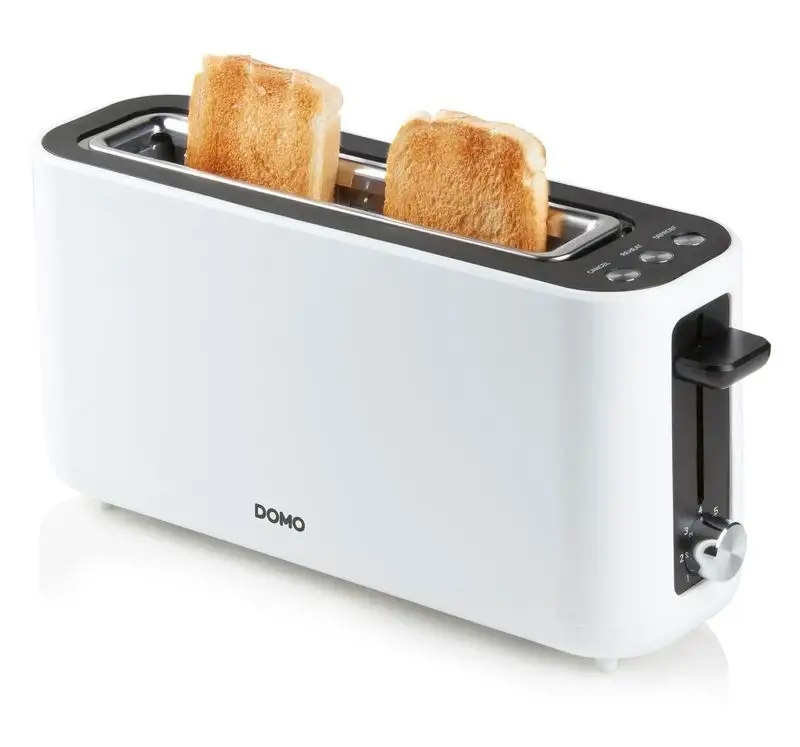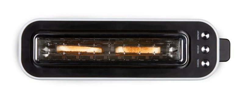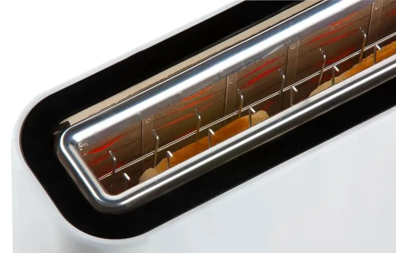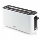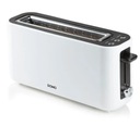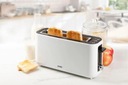 Toster w kolorze białym z długą szczeliną na 2 grzanki, lub dużą kromkę chleba. Elektroniczne sterowanie z funkcją podgrzewania i rozmrażania pieczywa. Automatyczne wysuwanie.