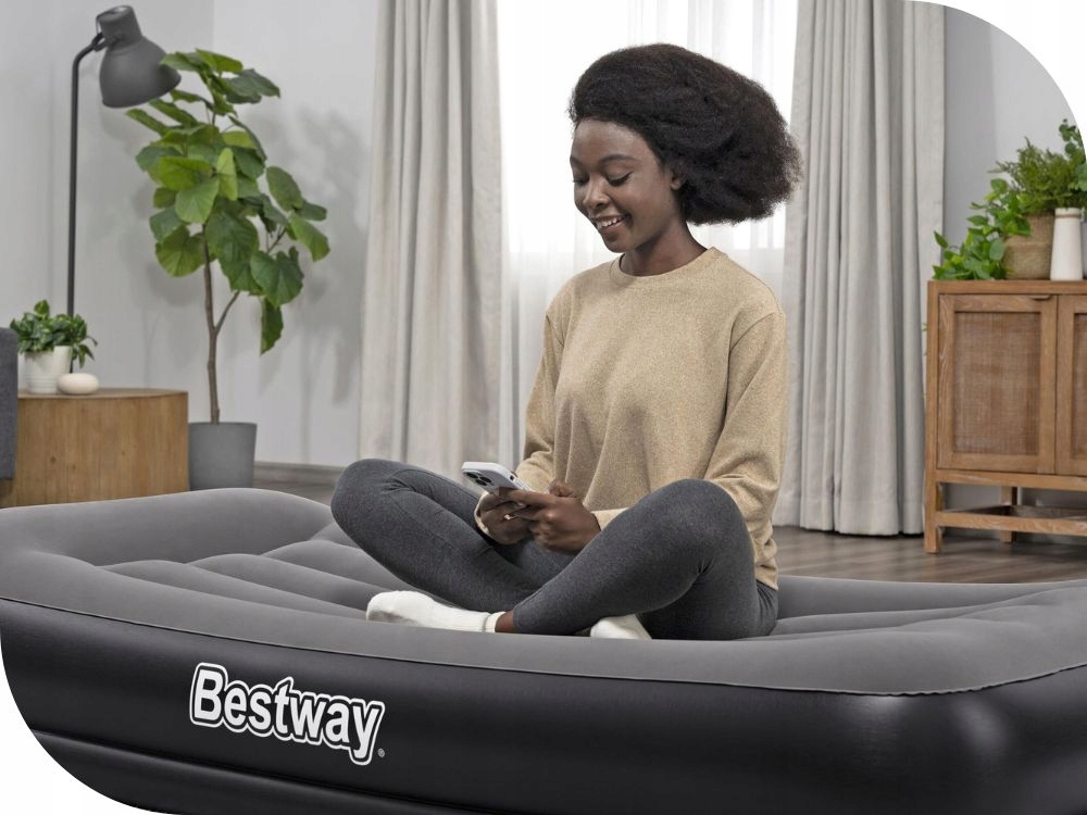 Jednoosobowy materac dmuchany marki Bestway z kolekcji Tritech Air Mattress zapewni komfort jaki oczekujesz. Technologia jak i konstrukcja materaca zapewnia wysoką wytrzymałość. a wbudowana pompka USB pozwoli szybko i sprawnie napompować produkt. Welurowy materac przypadnie do gustu nie jednemu użytkownikowi.