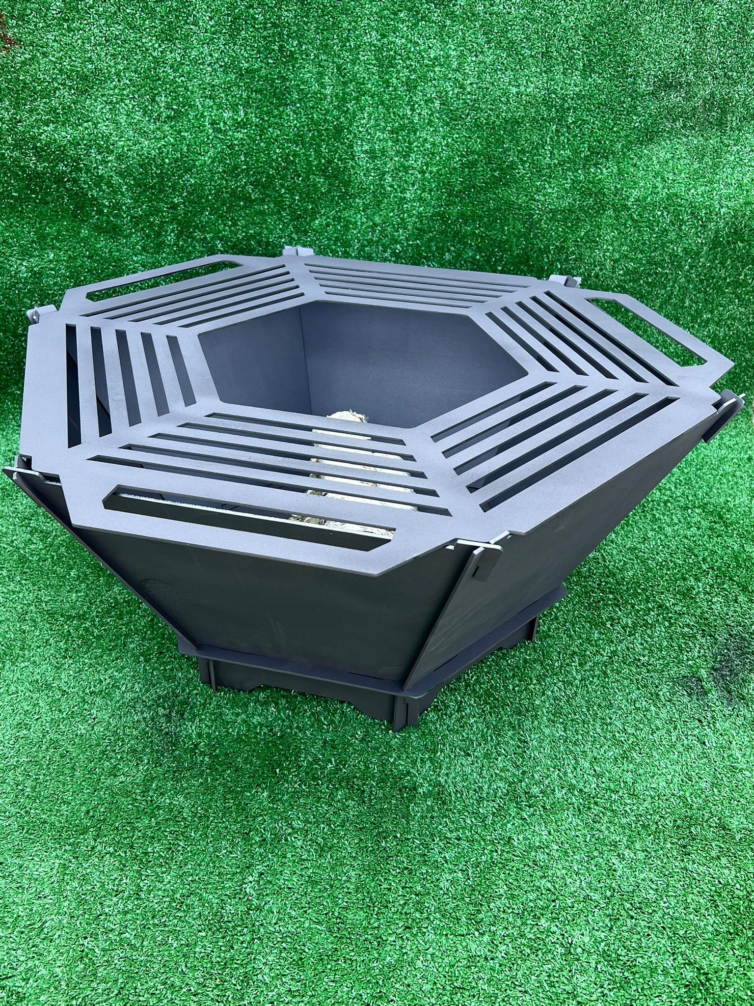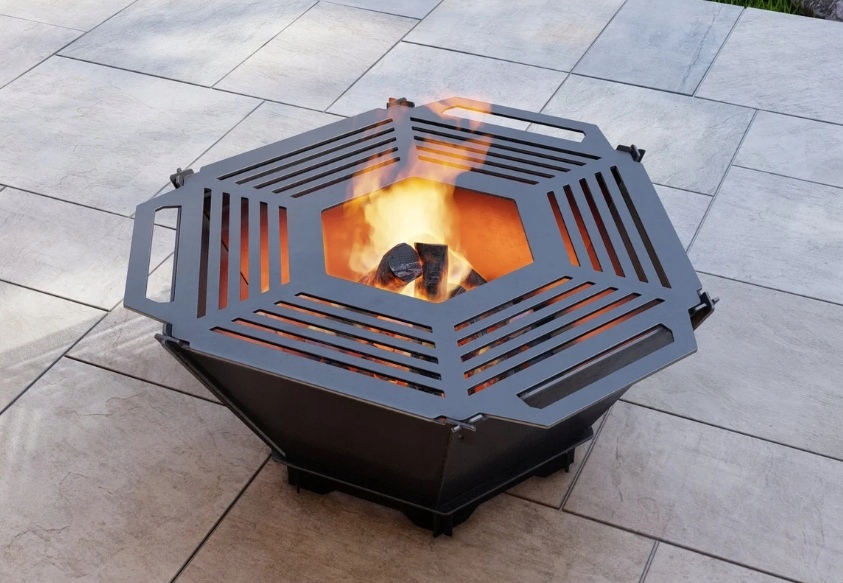 Nowoczesne palenisko ogrodowe z funkcją grilla – stal 3 mm, system click
