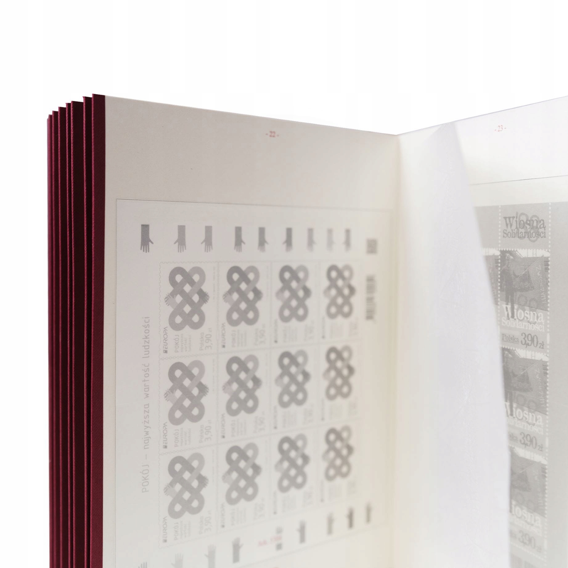 Wszystkie tomy wykonane w jednakowym formacie B5. Kolor okładki i futerału – bordo. Na okładce złocony napis znaczki pocztowe oraz lata wydania znaczków. Na grzbiecie klasera złocone oznaczenie tomu. Karty klaserowe w kolorze chamois.Znaczki umieszczane są w hawidach dostosowanych rozmiarem do znaczka.Na kartch nadruk znaczka.Brzegi kart zabezpieczone są lamówką w kolorze okładki, do której są mocowane płótnem introligatorskim w tym samym kolorze.
