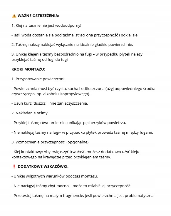Температура применения от 12градусов C влажность около 60%, полная вулканизация после около 12 часов поверхность применения нескользящей ленты должна быть сухой, без пыли и другие примеси, обезжиренные. Ленты лучше всего хранить при комнатной температуре, не подвергайте воздействию солнечных лучей.