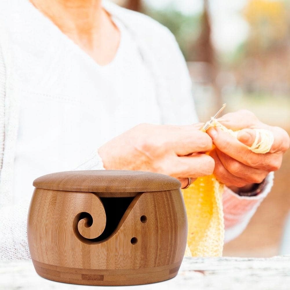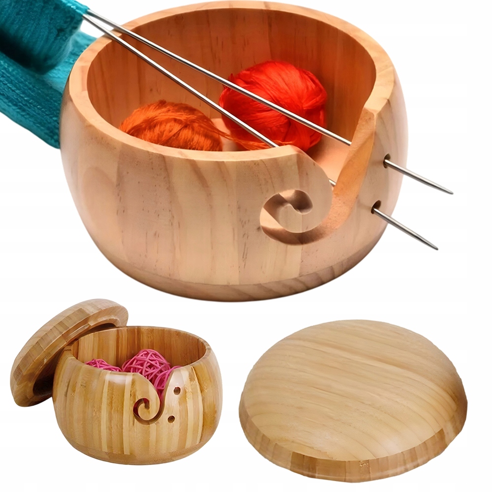 🏡 Miska do robienia na drutach z pokrywką, rowek rolkowy, gładka powierzchnia, klasyczny, naturalny odcień, elegancki design ❗❗❗