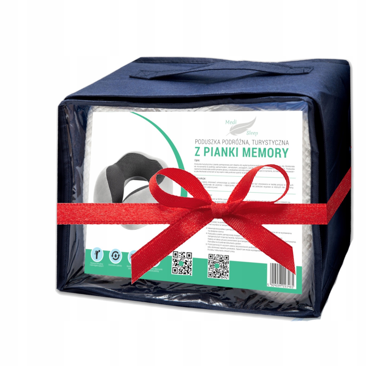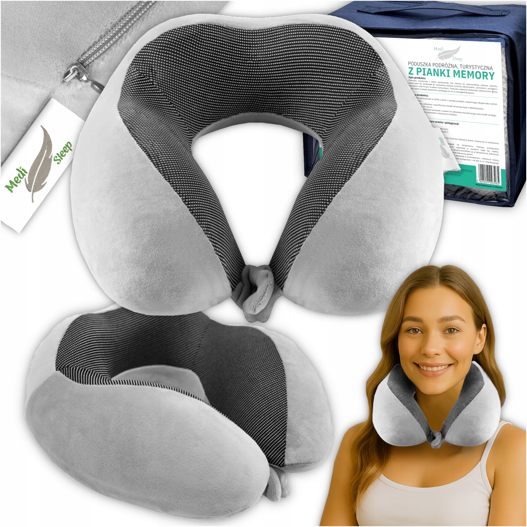 ➡️ Praktyczną torbę do przechowywania, dzięki której poduszka jest zawsze gotowa do zabrania w podróż.