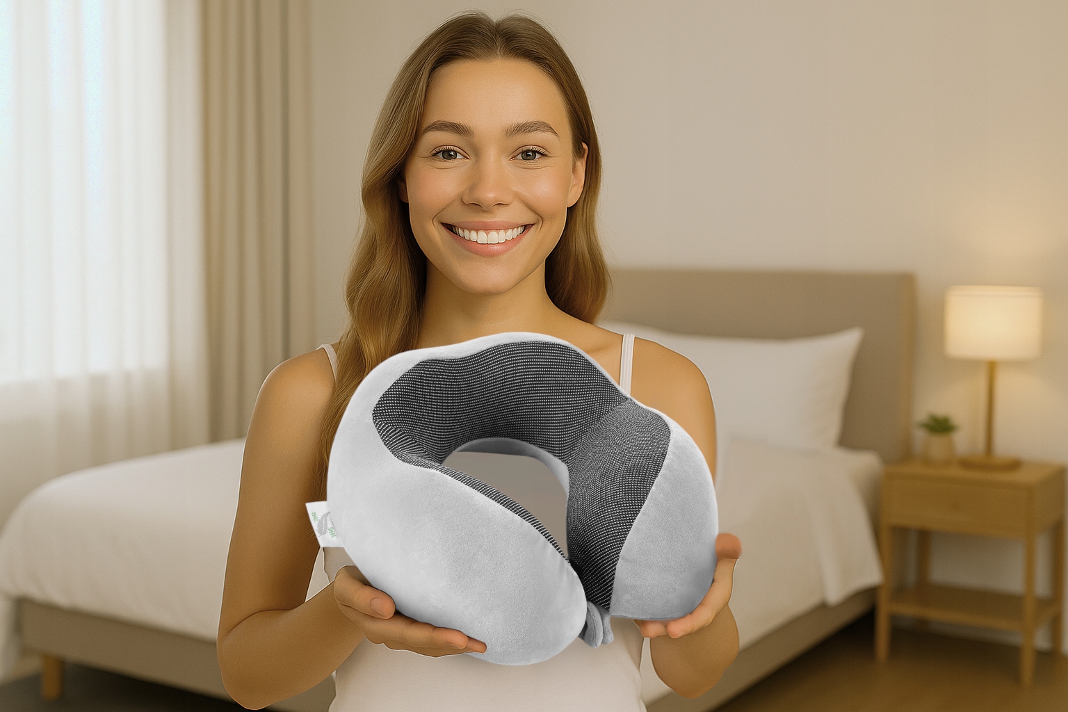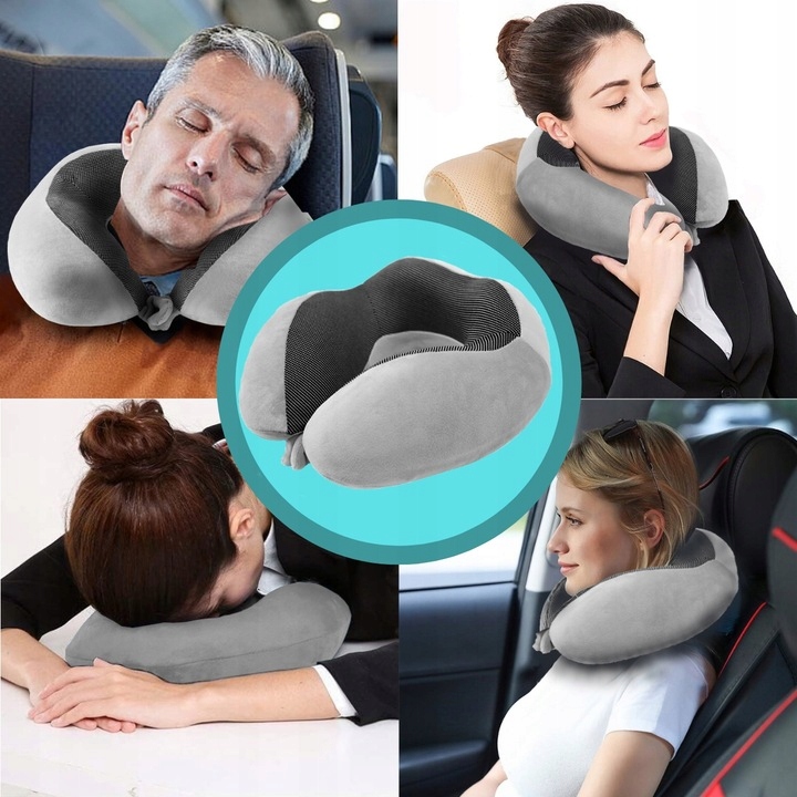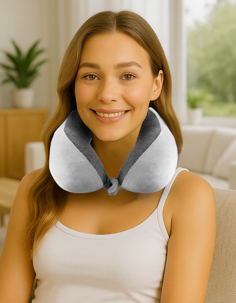 ➡️ Poduszkę podróżną z pianki memory, która idealnie dopasowuje się do kształtu szyi i głowy.