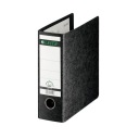 Leitz wysokiej jakości segregator z twardej tektury A5, z opatentowanym mechanizmem 180º. 5 lat gwarancji na mechanizm, atest GS. 50% szerszy otwór mechanizmu zapewnia szybszą i bardziej komfortową pracę. Możliwość odłożenia również po lewej stronie. Certyfikat GS. Bez szczelin, z otworem do chwytania, bez ochrony krawędzi, z okładką, z naklejoną etykietą na grzbiecie. Materiał: oprawa z kartonu (RC), kaszerowana papierem marmurowym (RC). Format: do A5, 230 x 216 mm, szerokość grzbietu: 77 mm. Certyfikat FSC®. Kolor: czarny.