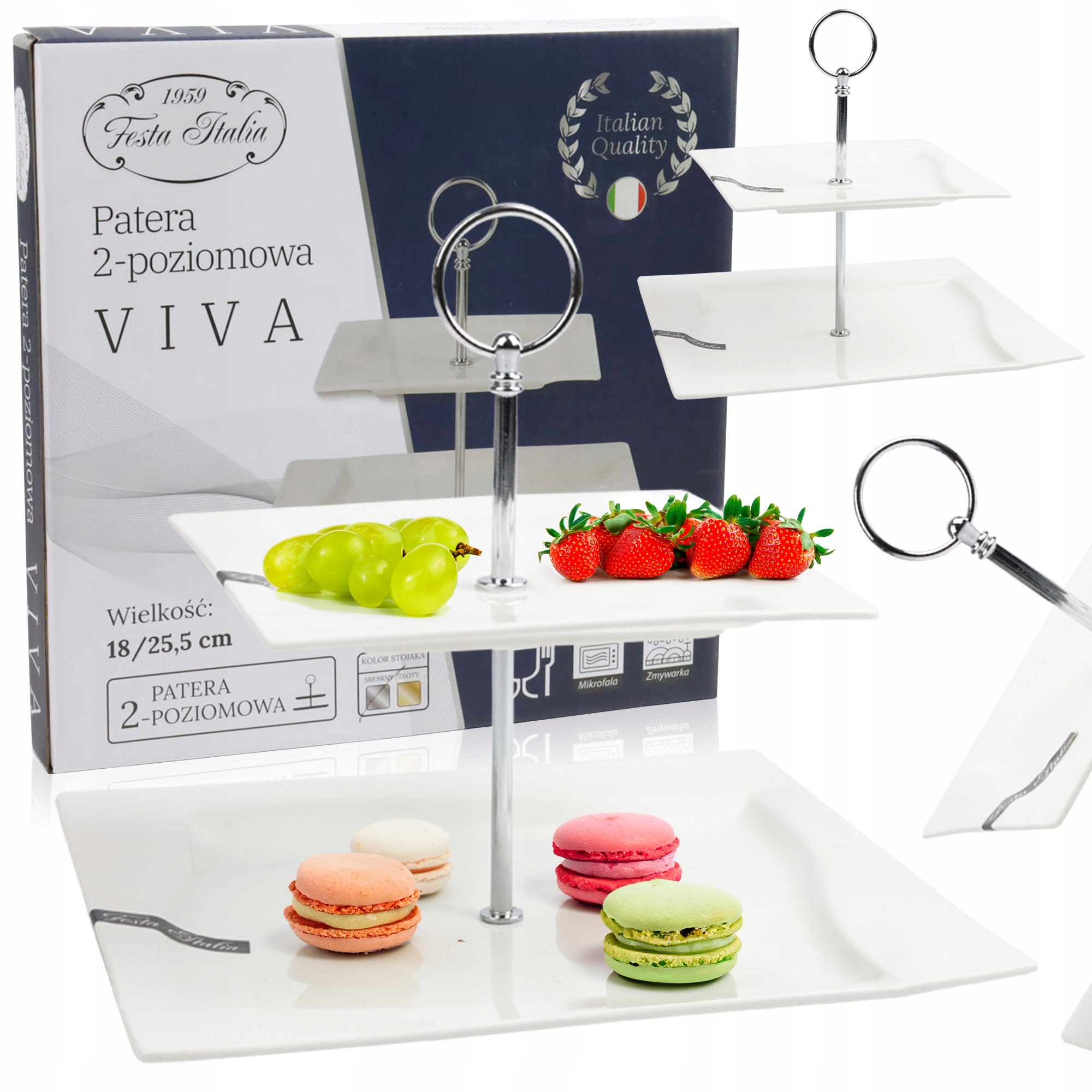 Dzięki dwóm poziomom, patera umożliwia efektowne wyeksponowanie różnych smakołyków: