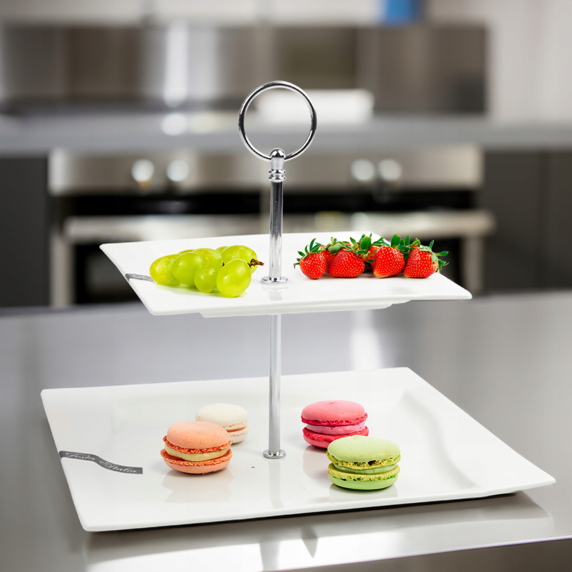 Stylowa, biała, piętrowa etażerka – idealna do serwowania ciast, owoców i przekąsek.