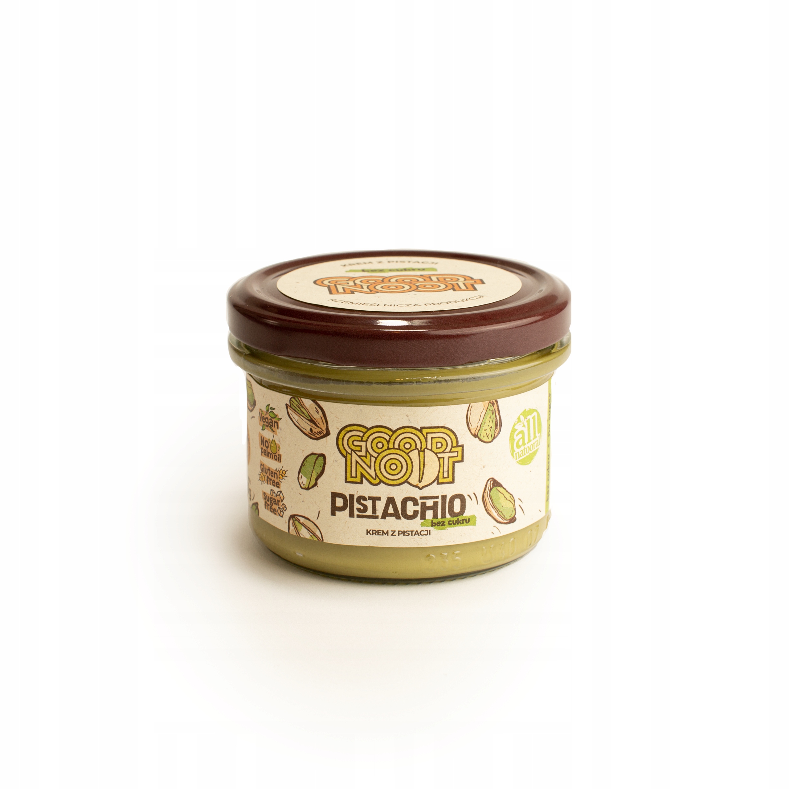 Бархатный и веганский крем Good Noot из благородных фисташек. Свободный от пальмовое масло, зеленый, культовый и без добавления сахара! Орехи обжариваем сами, измельчаем, переводим в банки и вручную маркируем-кустарно, от сердца. Вы можете смело вставлять, оставьте чувство вины за дверью, потому что сахара в ней не будет.