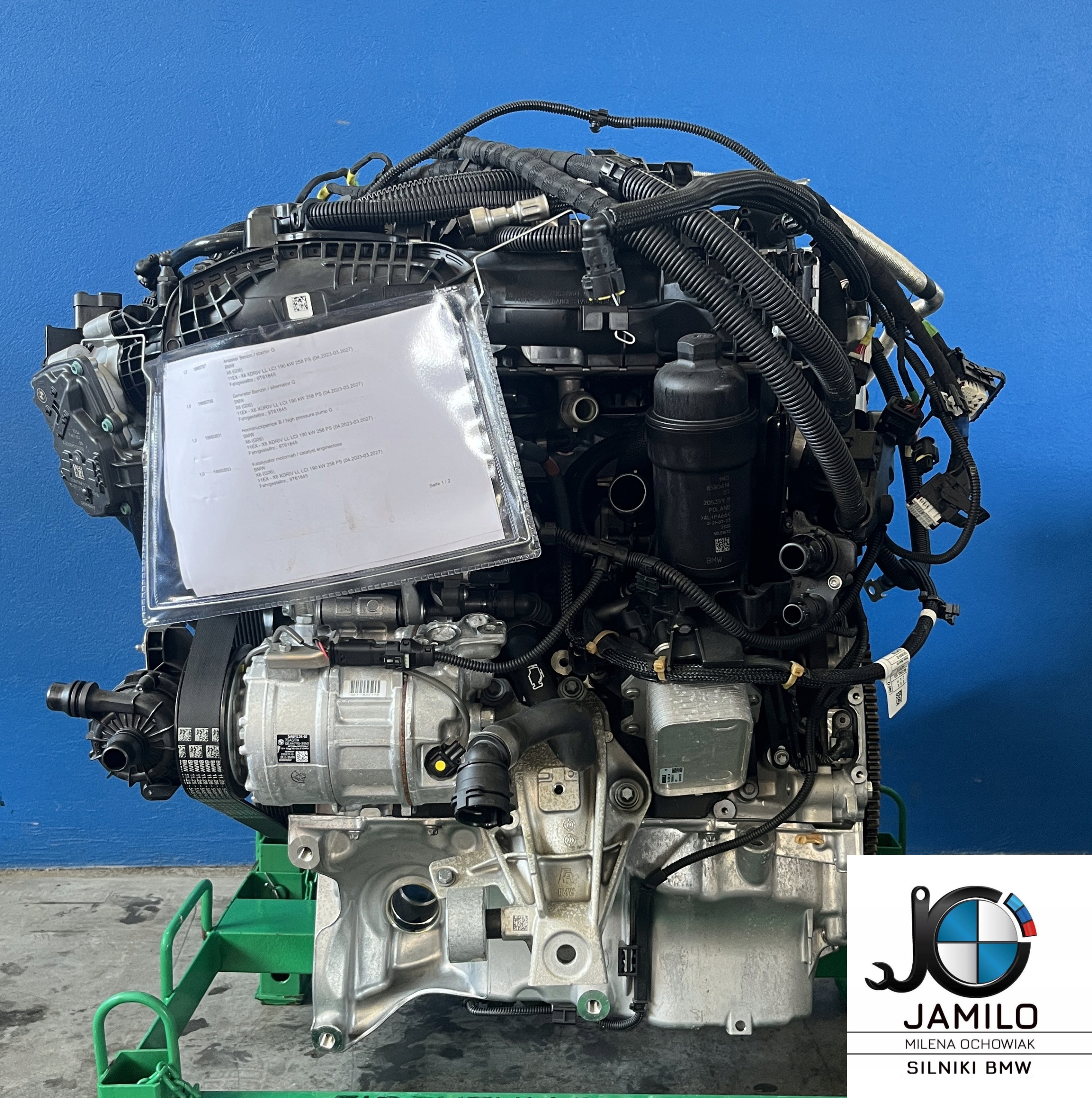 Oferujemy fabrycznie nowy, kompletny silnik BMW B48 B20 S 258KM – w pełnej konfiguracji z kompletnym osprzętem. Jest to oryginalna jednostka BMW, przygotowana do montażu – bez potrzeby przekładania elementów ze starego silnika.