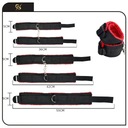Zestaw zawiera kompletną kolekcję akcesoriów do gry w dominację i uległość. Elegancka obroża z czerwonym podszyciem, wygodne kajdanki na ręce i nogi w trzech różnych rozmiarach (36cm, 42cm, 55cm), oraz skórzana smycz zapewniają pełną kontrolę. Miękkie, czerwone podszycie kajdanek gwarantuje komfort nawet podczas dłuższego użytkowania, a metalowe klamry i karabińczyki zapewniają niezawodność i bezpieczeństwo.