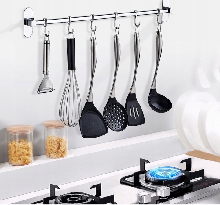 ✔ Na blacie jest więcej miejsca, a przybory kuchenne są pod ręką. Użyj haczyków do przechowywania przyborów kuchennych na ścianie i ciesz się gotowaniem każdego dnia.