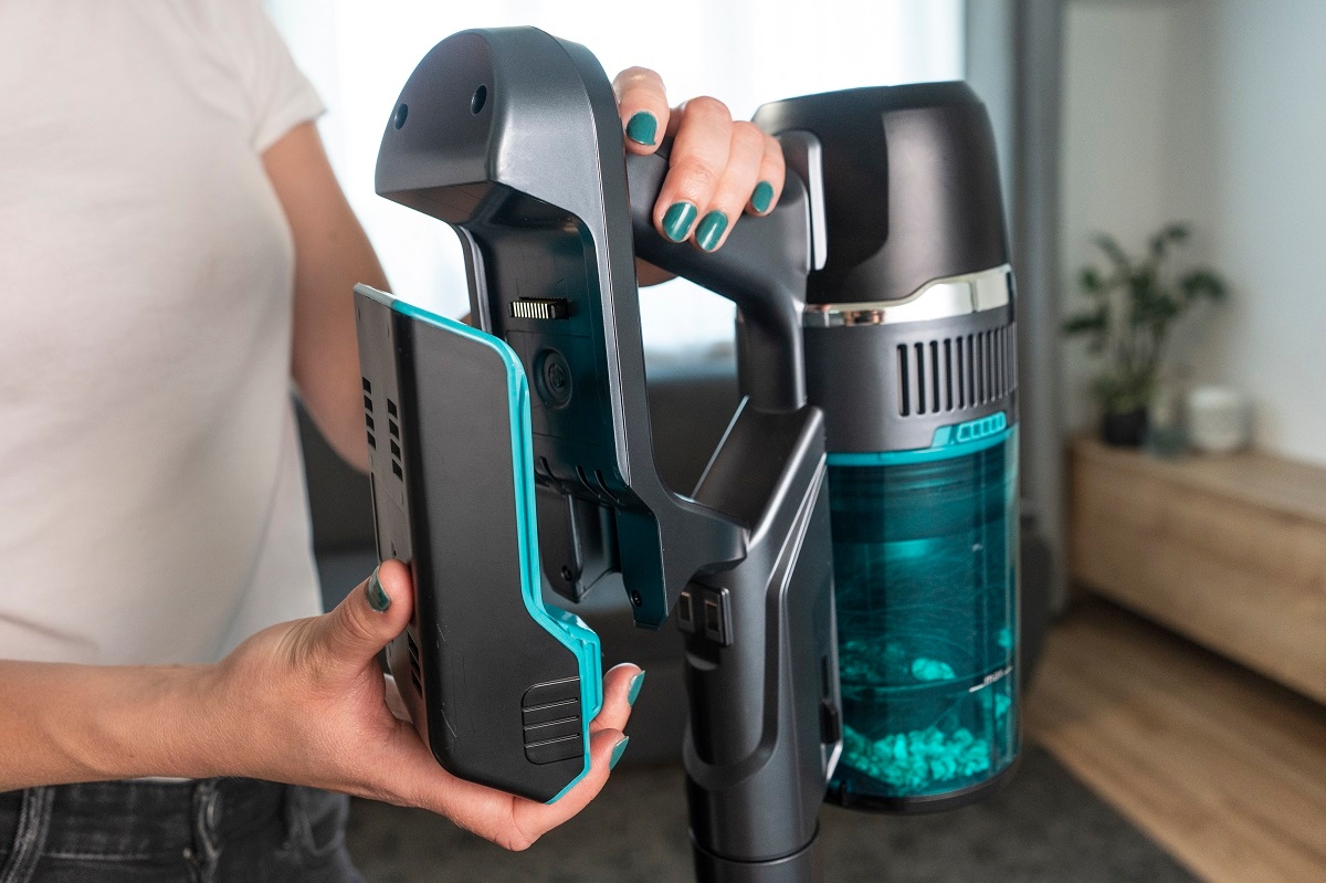 Odkurzacz pionowy VP6130 zapewni Ci pełną swobodę ruchów. Żaden kabel nie będzie Ci przeszkadzał podczas pracy, więc możesz sprzątać bez ograniczeń. W korpusie odkurzacza znajduje się wyjmowany akumulator Li-Ion o pojemności 2500 mAh, który charakteryzuje się dużą wytrzymałością i długą żywotnością. Pracuje do 60 minut na jednym ładowaniu, dzięki czemu możesz wygodnie odkurzyć nim całe mieszkanie. Odkurzacz można ładować na dwa sposoby: osobno poprzez podłączenie zasilacza bezpośrednio do korpusu odkurzacza lub poprzez uchwyt ścienny. Pełne ładowanie trwa 3-4 godziny.