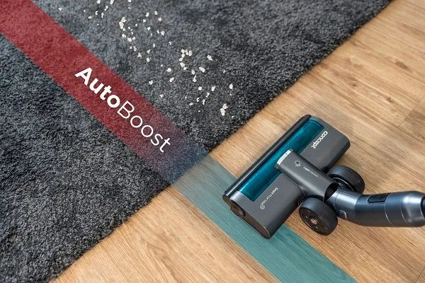 Odkurzacz posiada 3 tryby: Min, Auto i Max, które możesz zmieniać w zależności od rodzaju odkurzanej powierzchni. Niska moc nadaje się do twardych i lekko zabrudzonych podłóg, wysoka do dużych ilości brudu i czyszczenia dywanów. W trybie automatycznym odkurzacz rozpoznaje stopień zabrudzenia i odpowiednio dostosowuje siłę ssania.