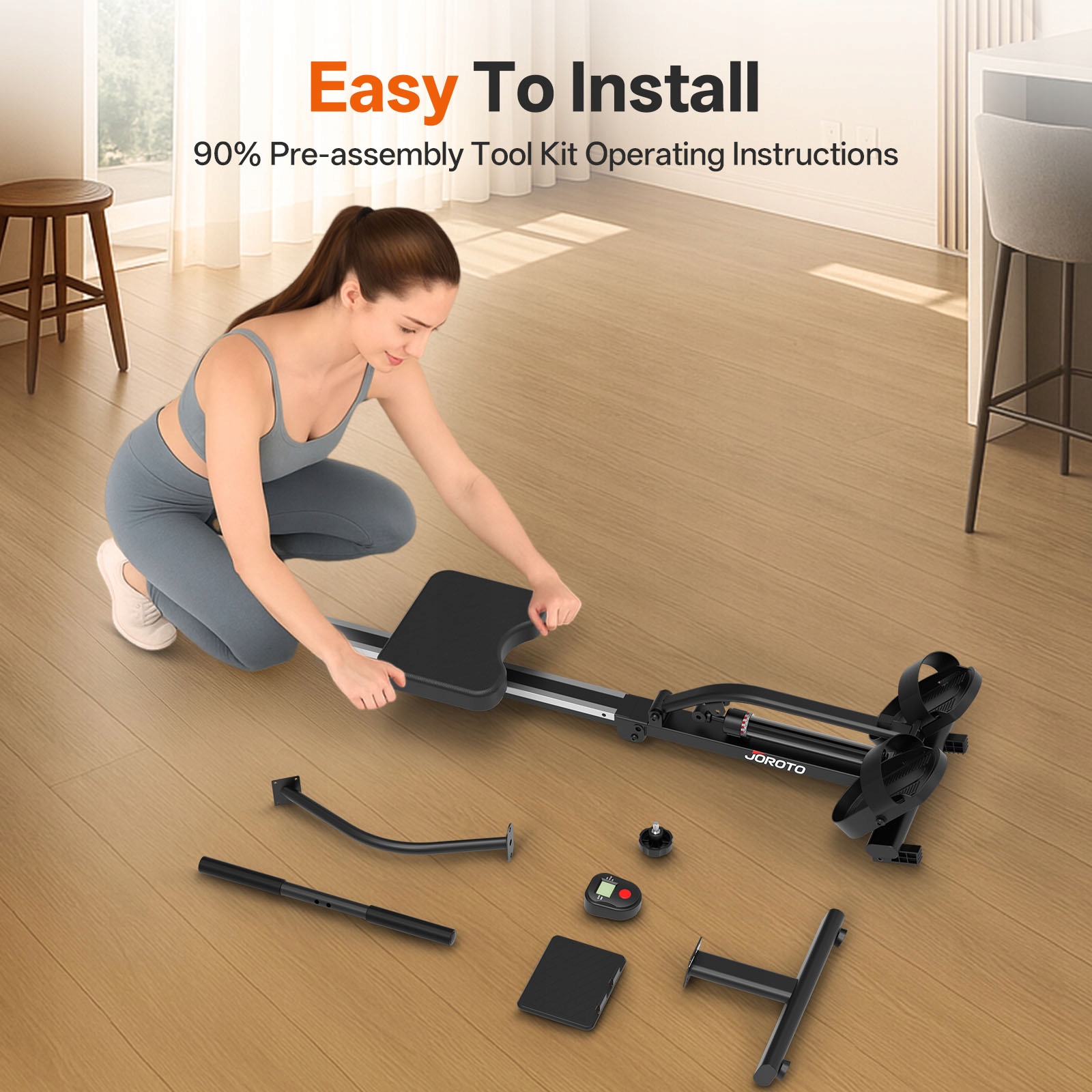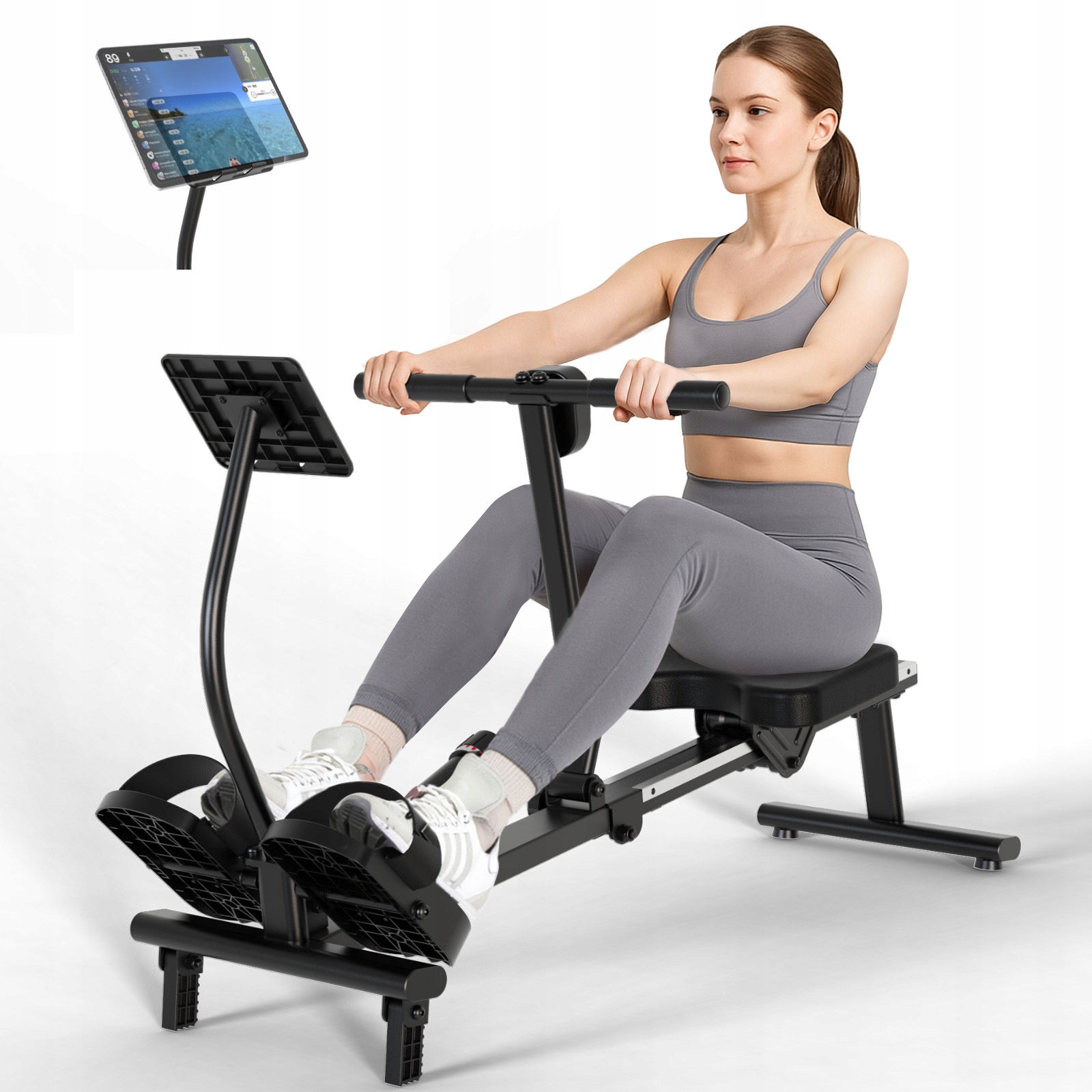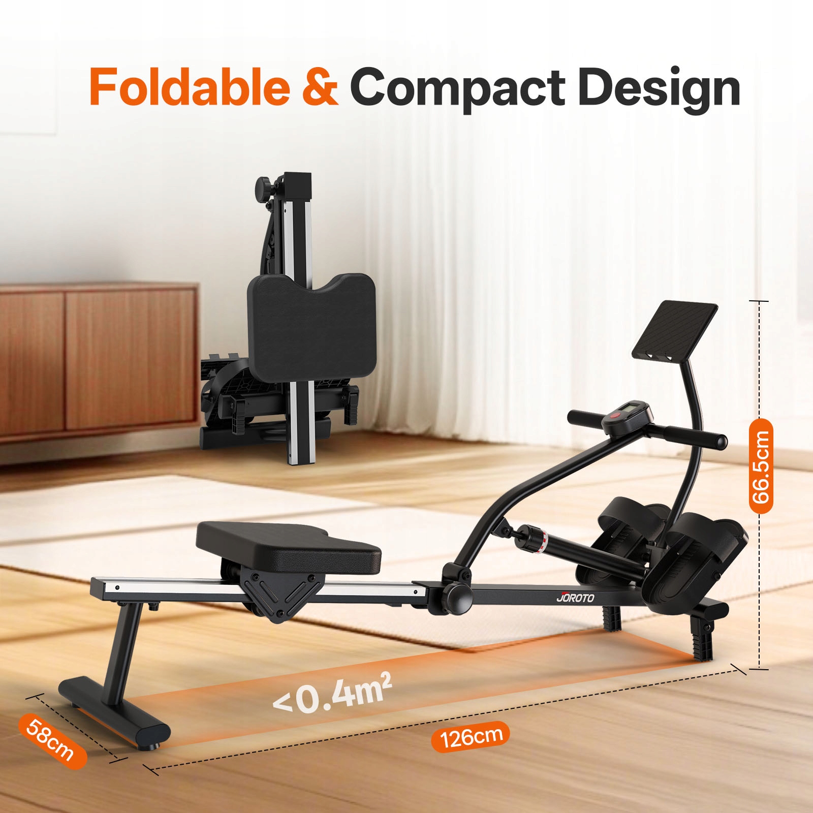 Ten składany wioślarz magnetyczny ma elegancką ramę ze stopu aluminium i kompaktową składaną konstrukcję, zajmując minimalną przestrzeń. Zapewnia płynną, cichą pracę. Ergonomiczne siedzisko i antypoślizgowy uchwyt zwiększają komfort treningu.