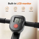 Obrotowe pedały antypoślizgowe z 41cm regulowanym rozstawem zmniejszają obciążenie stawów. Zagęszczone siedzisko poduszki wspiera dłuższe sesje. Ekran LCD wyświetla czas, dystans, kalorie i tętno za pośrednictwem kompatybilnych czujników. Obsługuje użytkowników do 120kg.