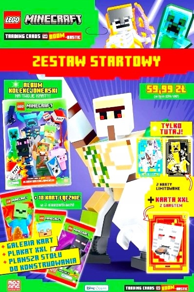 Nowa kolekcja kart LEGO® Minecraft™ Trading Card Collection – TNT BOOM-bastic. Jest to prawdziwa gratka dla fanów pikselowego świata zaczerpniętego prosto z bijącej rekordy popularności gry studia Mojang. W skład kolekcji wchodzi łącznie 276 kart, w tym karty powierzchni, netheru, konstruowania, puzzli, karty komiksowe i szmaragdowe. Zawartość: album kolekcjonerski, galeria kart, 3 saszetki z kartami, karta XXL, 2 karty limitowane, plakat XXL