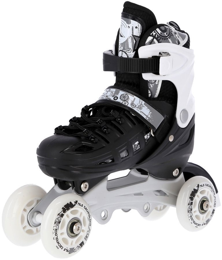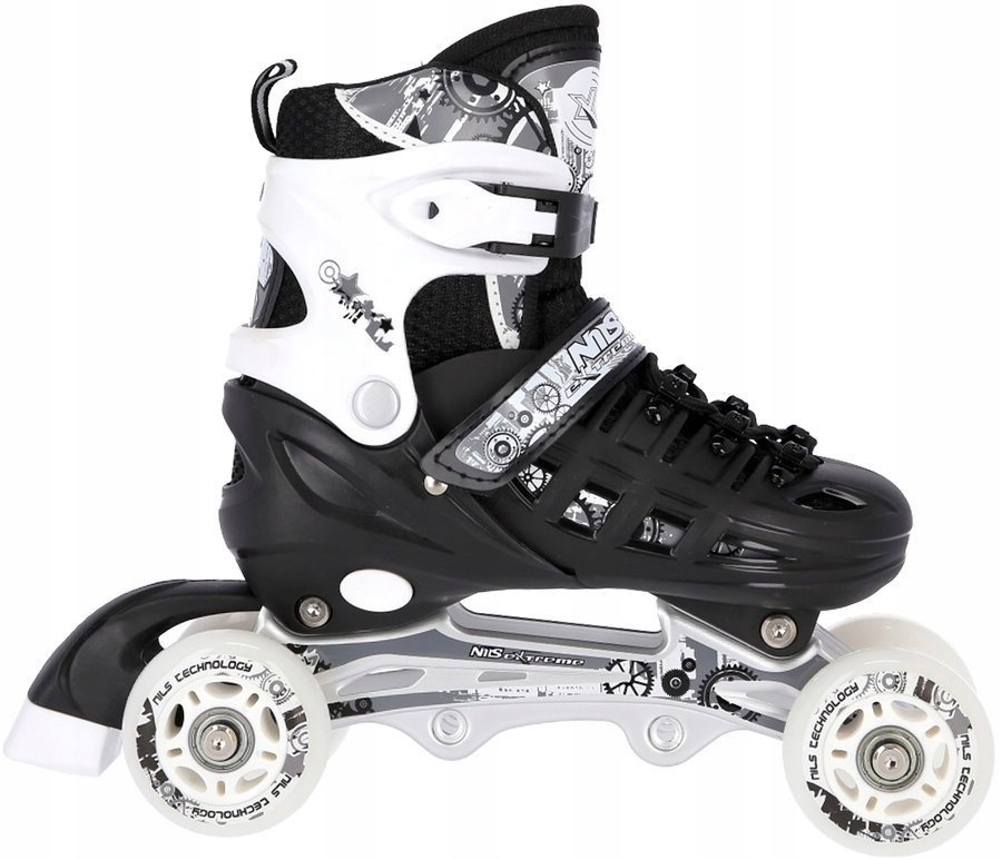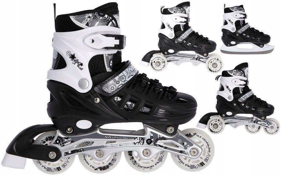 Zestaw NH10905 marki Nils Extreme to innowacyjne rozwiązanie 4w1, które zapewni dziecku całoroczną radość z aktywności – zarówno latem, jak i zimą. Jeden model pozwala na łatwe przekształcenie w łyżwy, łyżworolki, wrotki lub rolko-wrotki. Dzięki solidnej konstrukcji i wygodnemu systemowi regulacji rozmiaru, jest to sprzęt, który rośnie razem z dzieckiem i dostosowuje się do jego potrzeb oraz poziomu zaawansowania.