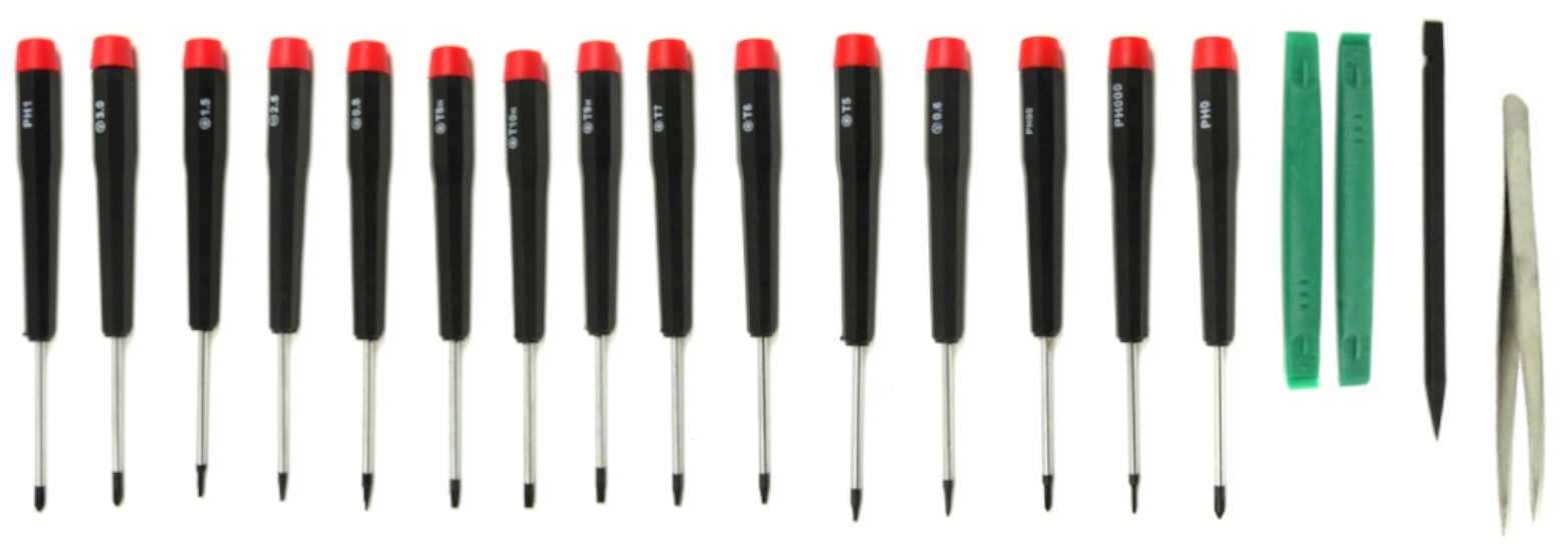 Zestaw 20 elementów i dedykowany jest do telefonów, tabletów, urządzeń elektronicznych oraz wielu, wielu innych. Zestaw przychodzi do nas w wygodnym pokrowcu, który znacznie ułatwia transportowanie i przechowywanie narzędzi