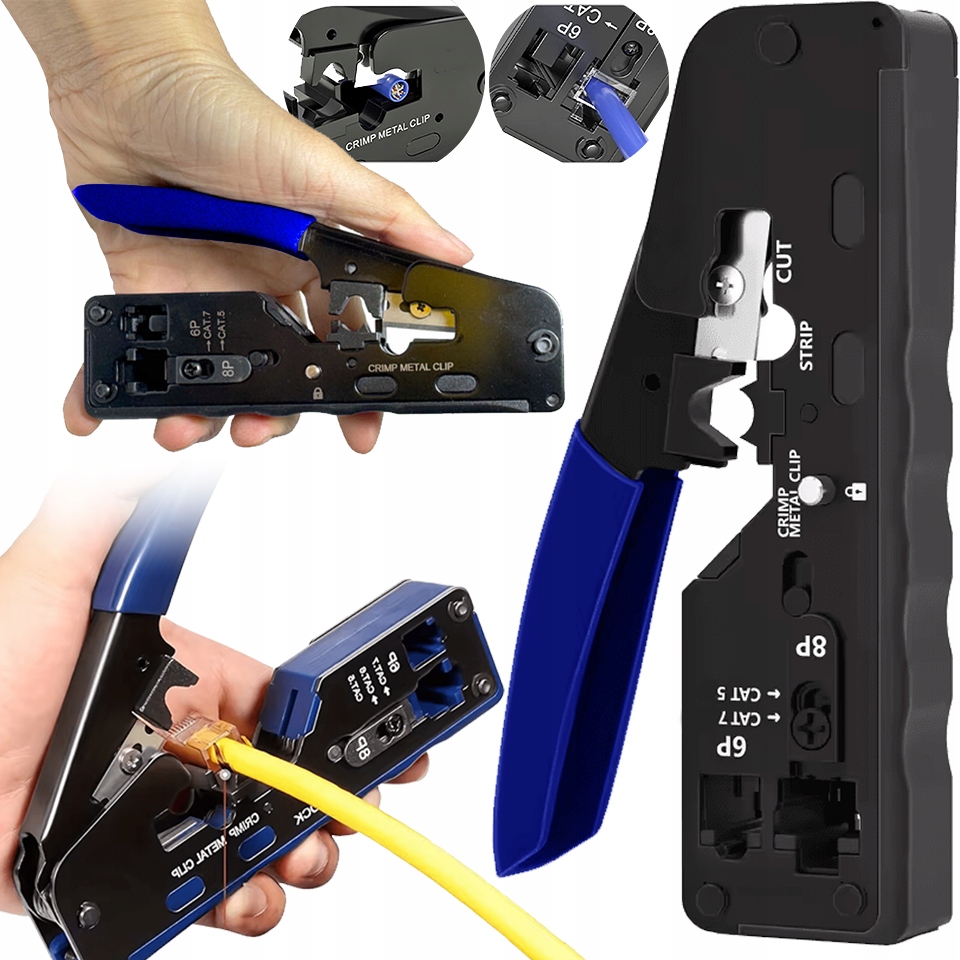 Profesjonalna zaciskarka, zaprojektowana do pracy z przewodami LAN specjalnie CAT.7, ale również kompatybilna z CAT.6 i CAT.5E.