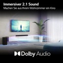 Przestrzenne brzmienie dzięki systemowi kanałów 2.1 z głośnikiem niskotonowym.
