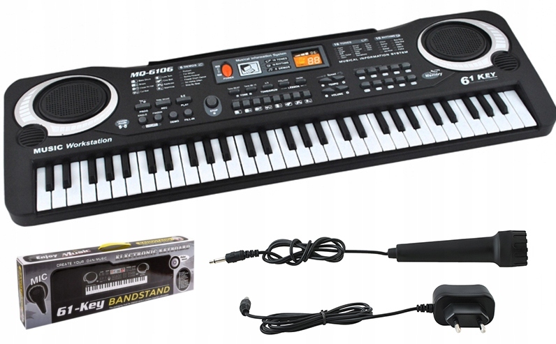 Organy posiadają wejście na mikrofon (w zestawie). Zasilać keyboard można zasilaczem (w zestawie) lub bateriami (4 baterie AA - brak w zestawie).